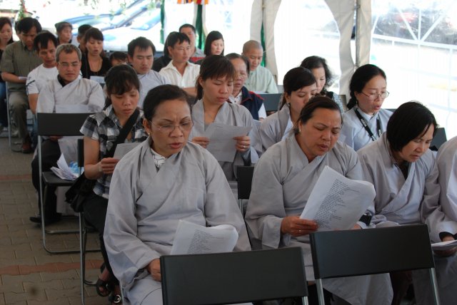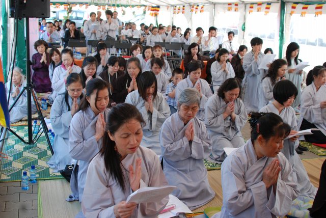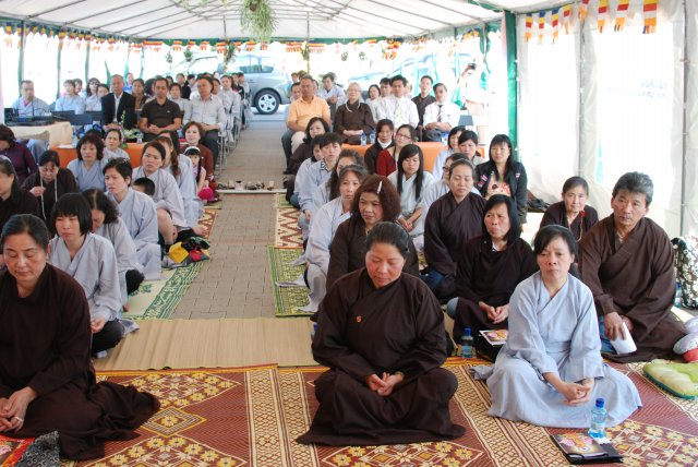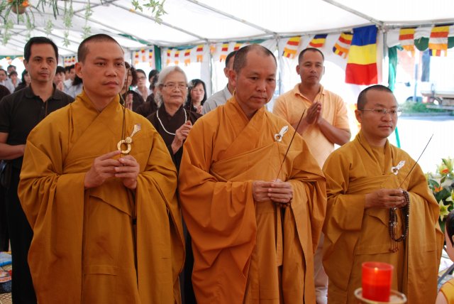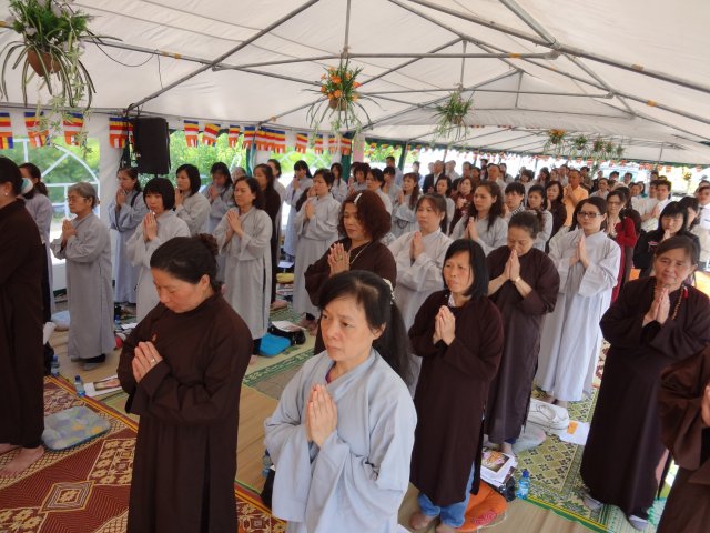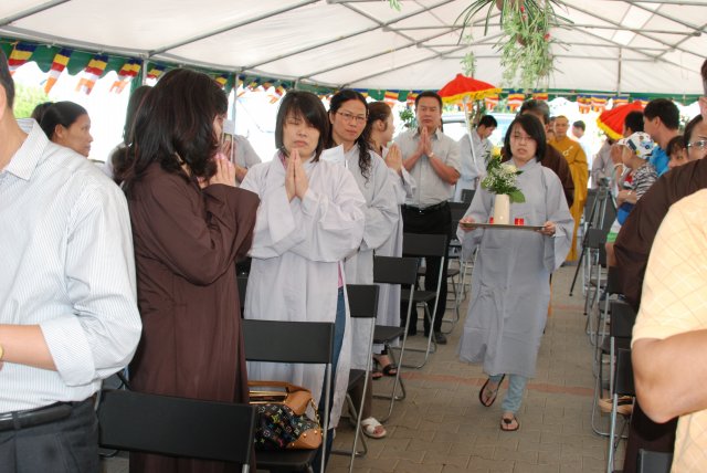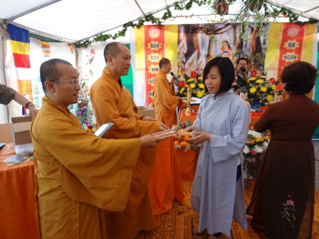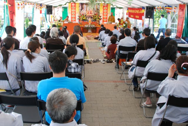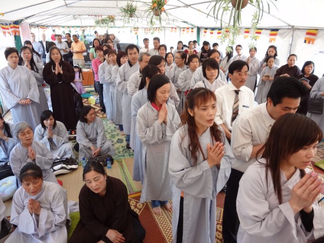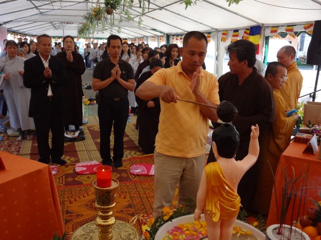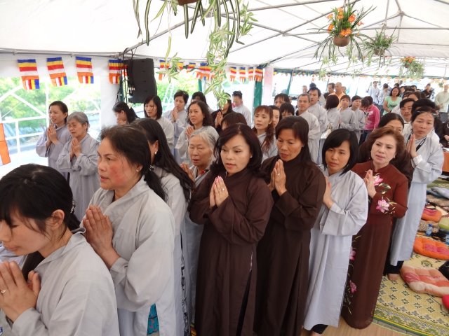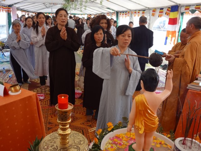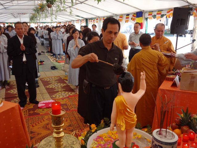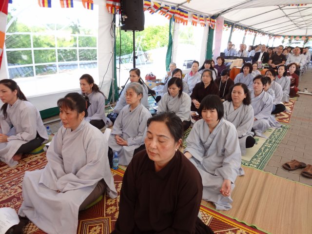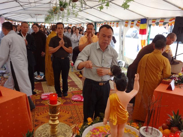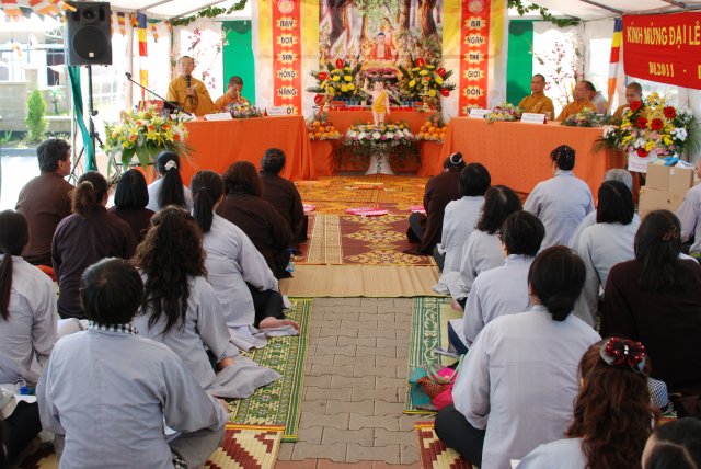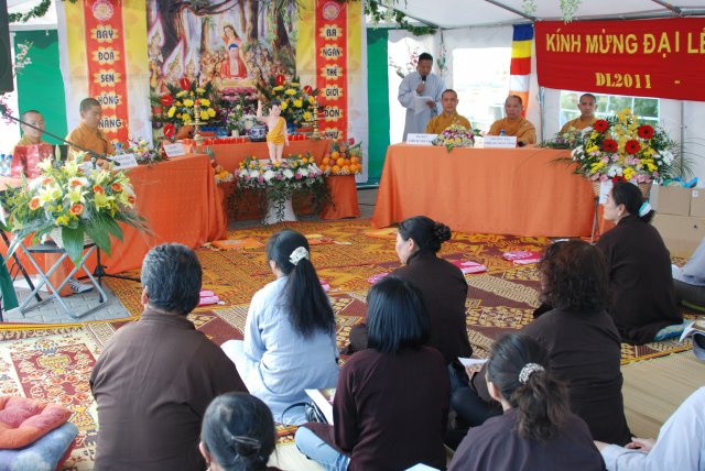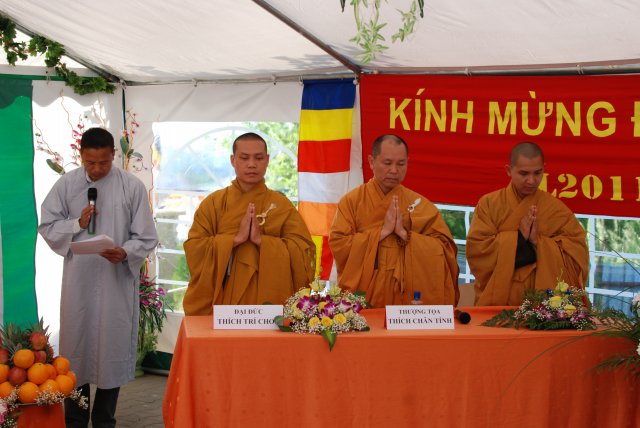 Đúng 17h, chư Tôn đức chứng minh và quý Thiện Nam Tín Nữ đã long trọng tổ chức lễ Phật Đản. Ngoài những nghi thức truyền thống chào Đạo kỳ, tuyên bố lí do, giới thiệu chương trình và thành phần tham dự… Buổi lễ thêm phần ý nghĩa qua lời phát biểu khai mạc của TT. Thích Trí Chơn, phần pháp thoại của TT. Thích Nhật Từ, cuối cùng là lời đạo từ của TT. Thích Chân Tính nhắc nhở mọi người tinh tấn tu tập, biết phát huy những giá trị văn hóa bản địa vốn có và lấy nền tảng giáo dục tâm linh làm gốc rễ để giữ gìn các truyền thống nguồn cội tốt đẹp của dân tộc Việt.