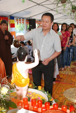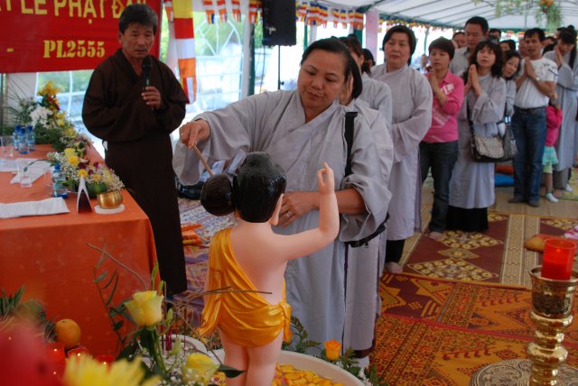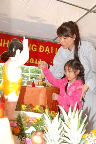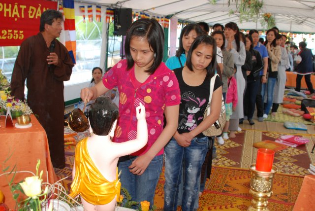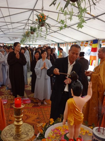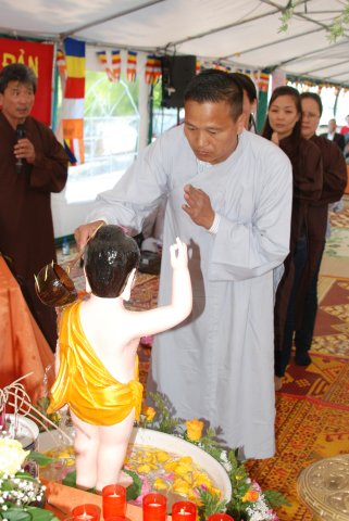 Kết thúc buổi lễ là nghi thức Khánh Đản và Lễ Tắm Phật. Nhân dịp này TT. Thích Chân Tính đã gửi VCD “Dư Âm” đến các Phật tử về tham dự.