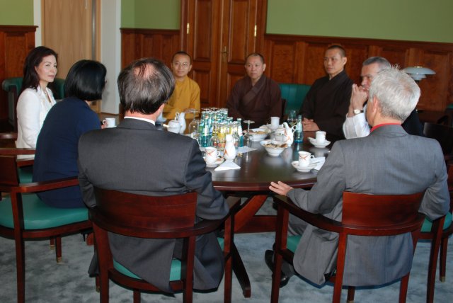 Trong chuyến Phật sự lần này, Trung Tâm Văn Hóa Phật Giáo Việt Nam tại Tp. Dresden có trình kế hoạch và lịch trình đoàn chư Tăng Việt Nam sang hoằng pháp cho người Việt tại Đức lên Quốc Hội của bang, Ông Chủ tịch Quốc hội đã chủ động có lời mời chư Tăng đến để gặp gỡ. Được biết, ông Matthias Rößler trước đây là Bộ Trưởng Bộ Văn Hóa nên Ông rất quan tâm đến vấn đề giáo dục, đặc biệt là tầng lớp thanh thiếu niên. Nhân dịp này Ông đã nhận xét cộng đồng người Việt có tầm ảnh hưởng lớn trong Tp. Dresden, đã đóng góp rất tích cực trong việc hội nhập văn hóa, giáo dục cộng đồng và góp phần tạo nên nét văn hóa đa chủng tộc cho bản địa. Phía chính phủ của Bang rất quan tâm đến chính sách phát triển kinh tế, đời sống con người, đặc biệt là tôn trọng tín ngưỡng tôn giáo của từng cộng đồng. Mong muốn TTVHPG Việt Nam luôn thể hiện tính đoàn kết hòa hợp, mang thông điệp hòa bình và chú trọng việc giáo dục tâm linh cho cộng đồng người Việt, đặc biệt là giới trẻ.