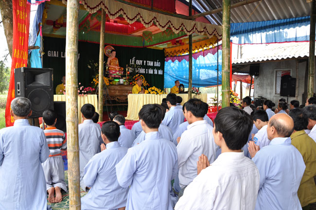 Qua đó, Thượng tọa đã giải thích cho hàng Phật tử hiểu rõ hơn ý nghĩa quy y Tam Bảo, những việc người Phật tử tại gia cần phải thực hiện và hướng dẫn đại chúng đồng thanh phát nguyện quy y nương tựa ba ngôi báu Phật Pháp Tăng. Bắt đầu từ đây, chính thức trở thành người con Phật, noi dấu đấng cha lành cùng tìm về bến giác an vui.