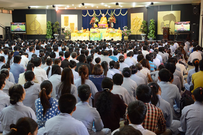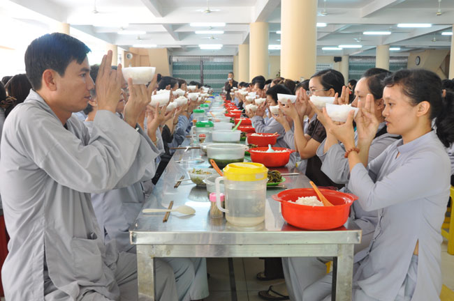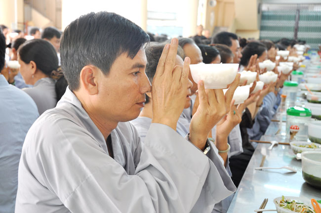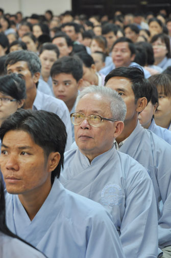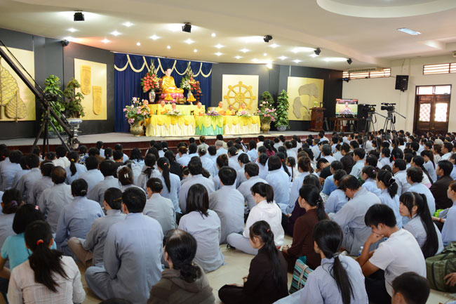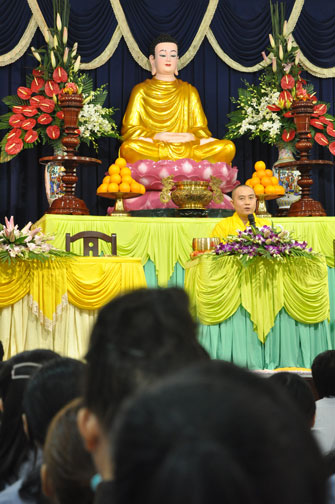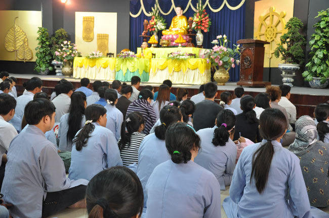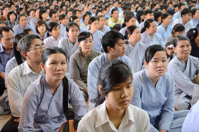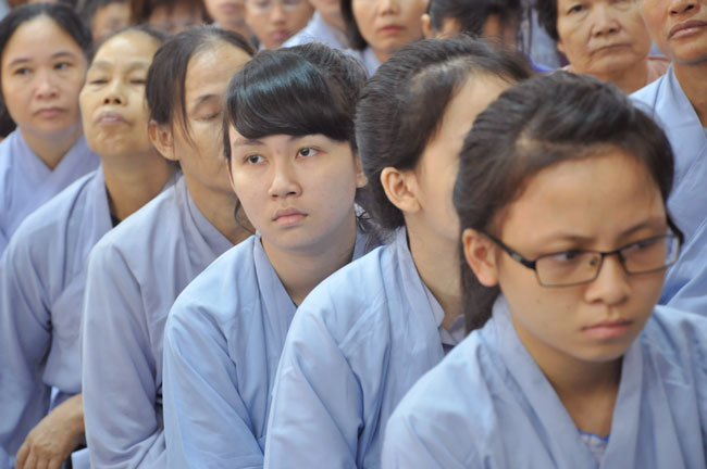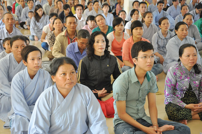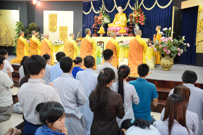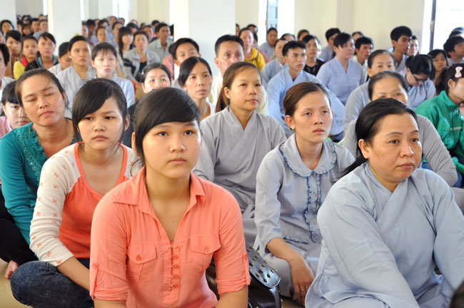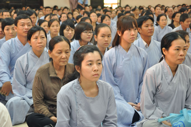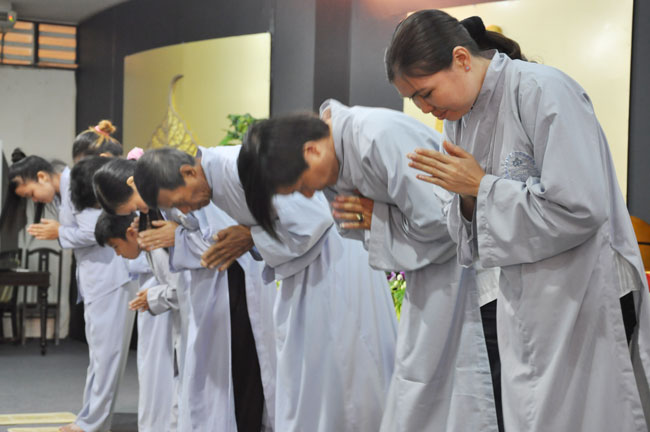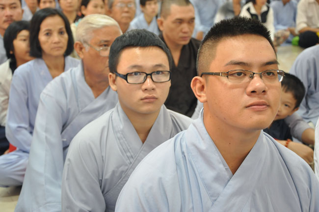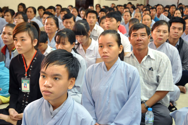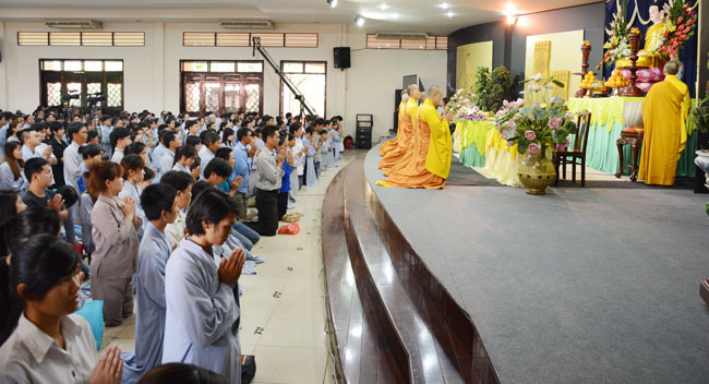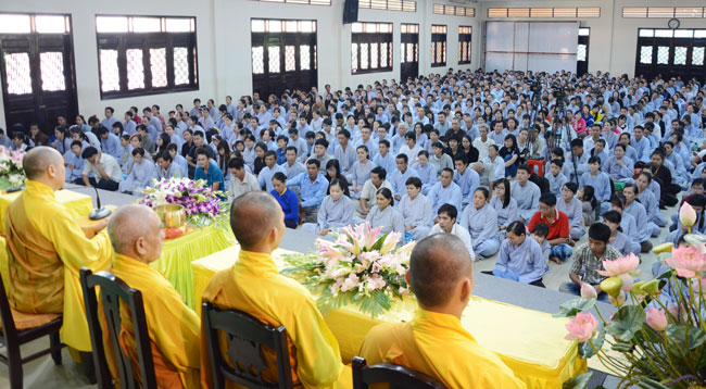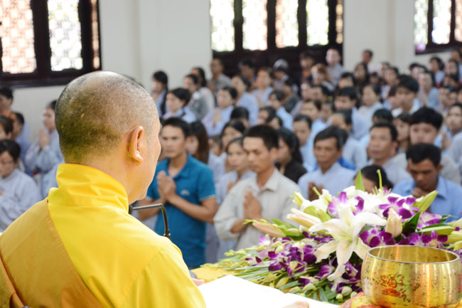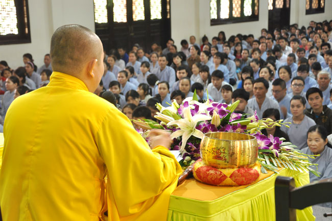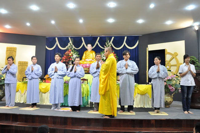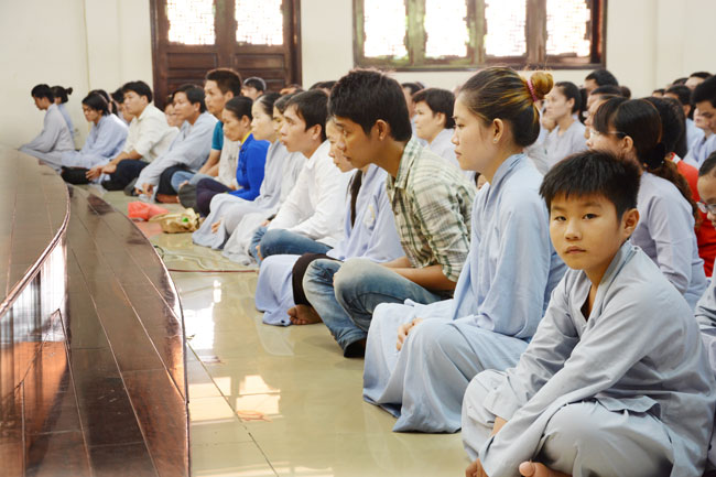 Vào 8h, thiện nam tín nữ vân tập về các khu vực giảng đường lắng nghe Đại đức Thích Tâm Trung, Phó trụ trì chùa Hoằng Pháp giảng giải các khái niệm căn bản về: Quy y, Tam bảo, sám hối, Phật tử, Ưu-bà-tắc, Ưu-bà-di, Bổn sư, Y chỉ sư; trình bày về ngũ giới và hướng dẫn một số oai nghi cần thiết của người Phật tử như: chắp tay, xá chào, lễ lạy, đi đứng nằm ngồi.