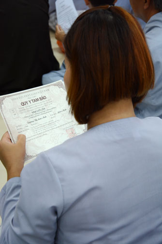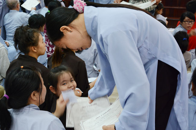 Sau khi quy y, các giới tử được BTC cấp giấy chứng nhận Quy y Tam Bảo và gửi tặng phần quà pháp bảo gồm: DVD Lễ quy y Tam Bảo, sách Lược truyện Đức Phật Thích Ca.