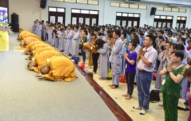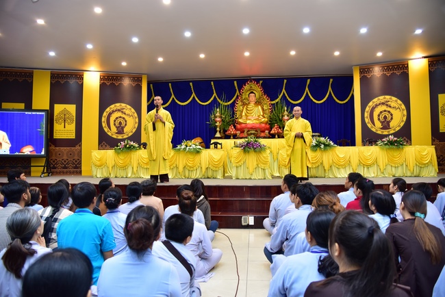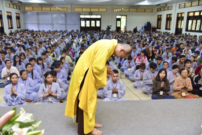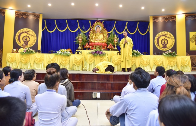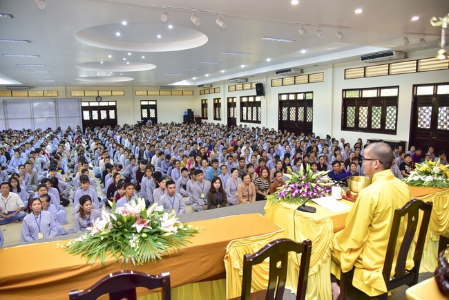 Trong buổi lễ, Thượng tọa có lời tán thán tinh thần ham tu ham học của quý thiện nam tín nữ vì đã biết quay về nương tựa Tam Bảo, sống cuộc đời đạo đức, hướng thượng. Chúng ta thật may mắn và đầy đủ phước báu khi có được thân người, được học Phật pháp và quy y Tam Bảo. Trên thế gian này có nhiều tôn giáo tà kiến, mê tín dị đoan đưa con người đến con đường tội lỗi, trái với luân thường đạo lý, gây hại cho chính bản thân và xã hội. Vì vậy chúng ta phải nhận thức được sự may mắn khi làm đệ tử Phật, vì đây là con đường đưa đến sự an lạc, hạnh phúc trong hiện tại cũng như tương lai.