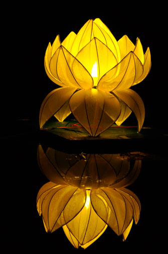 Đúng 18h30, chương trình đêm hội chính thức bắt đầu, với phần cung nghinh chư Tôn thiền đức Tăng Ni quang lâm. Vì là lễ hội hoa đăng đầu tiên được tổ chức ở đây nên sự hân hoan, niềm phấn khởi hiện rõ trên khuôn mặt của quý Phật tử tham dự. Sau phần diễn văn khai mạc do Đại đức Thích Tâm Kính, trưởng BTC tuyên đọc, chương trình bước vào phần chính của đêm lễ đó là phần truyền đăng. Ánh sáng của từ bi và trí tuệ được chư Tôn đức thắp lên và Đại đức trụ trì đã mang ánh sáng đó truyền sang cho quý Phật tử. Một hình tượng biểu trưng tuyệt vời cho sự truyền đăng tục diệm. Ánh sáng của tình thương và sự hiểu biết luôn phải được hiện hữu để soi chiếu vào dòng đời đầy dẫy những thống khổ và đau thương này.