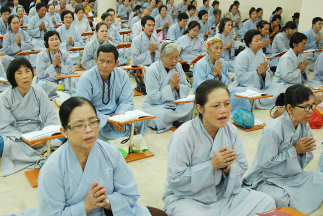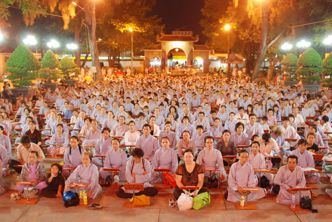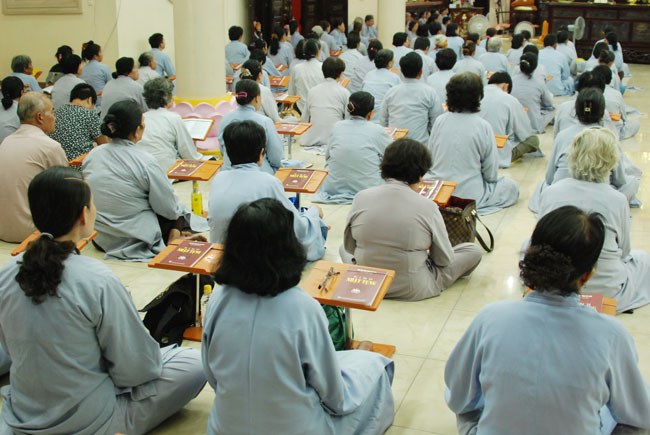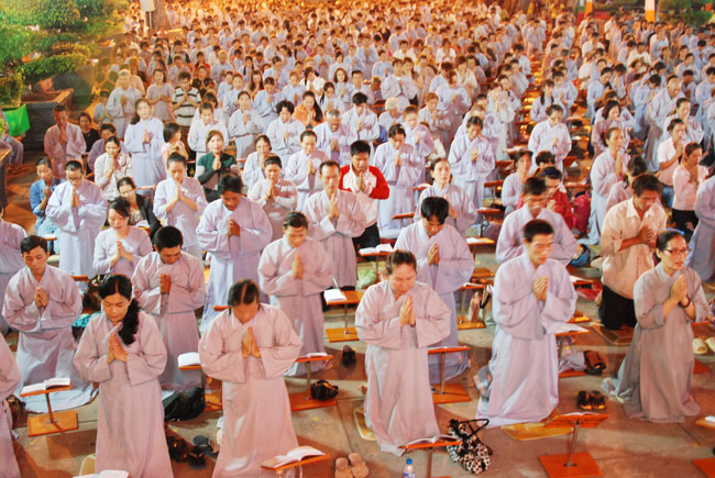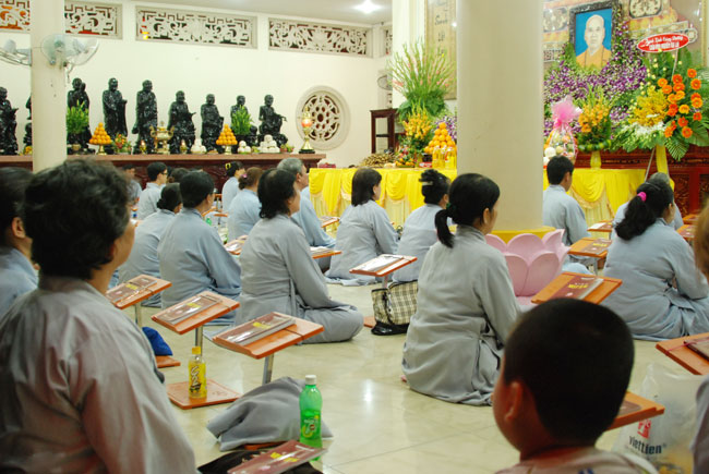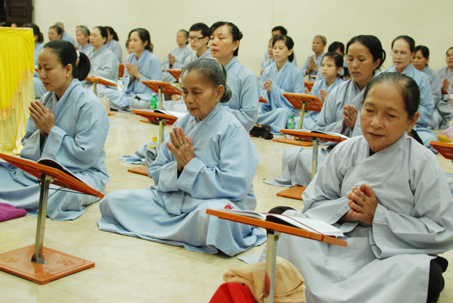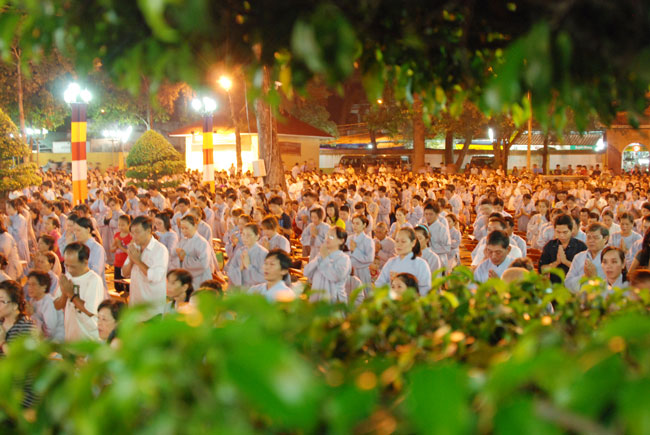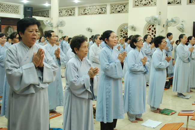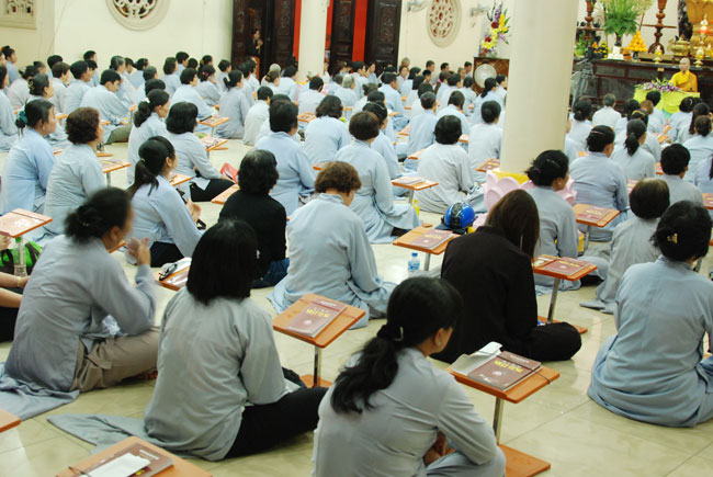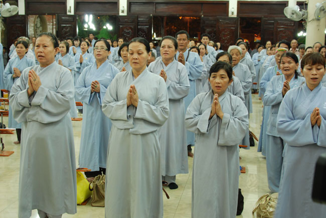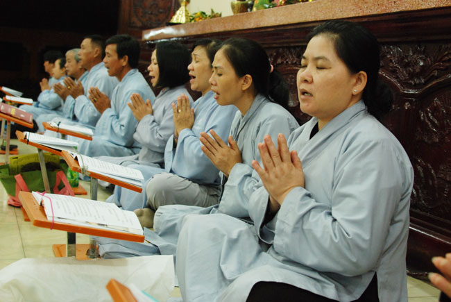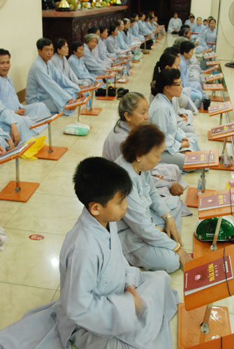 Vào 20h, khóa lễ kết thúc, đại chúng cùng tụng đọc 5 giới của người Phật tử tại gia.