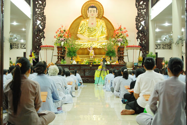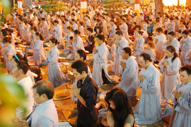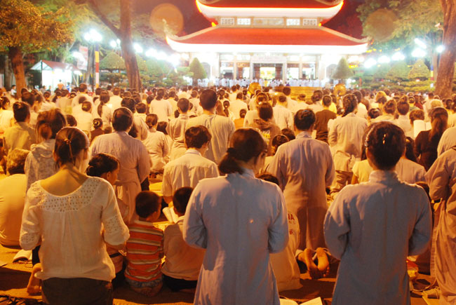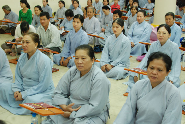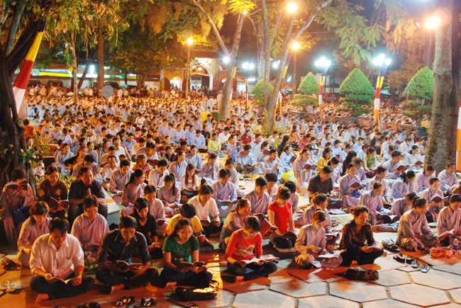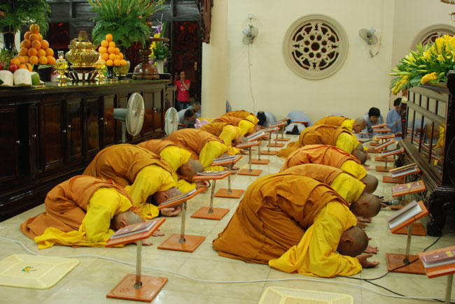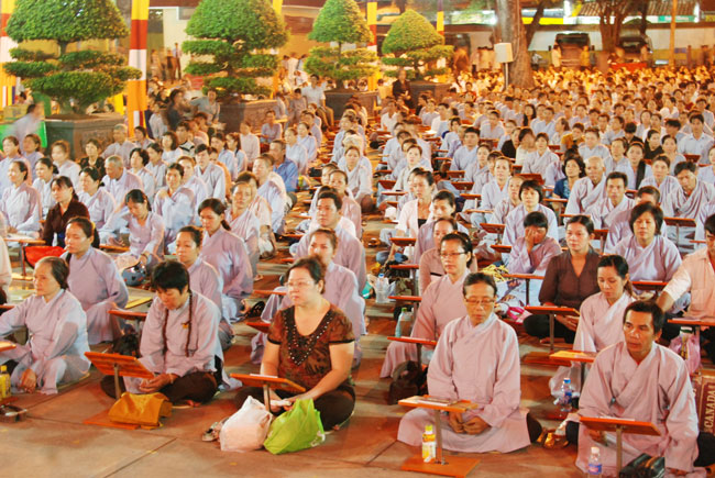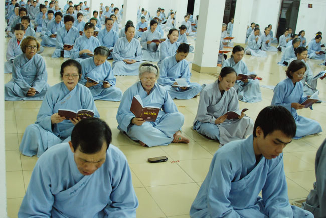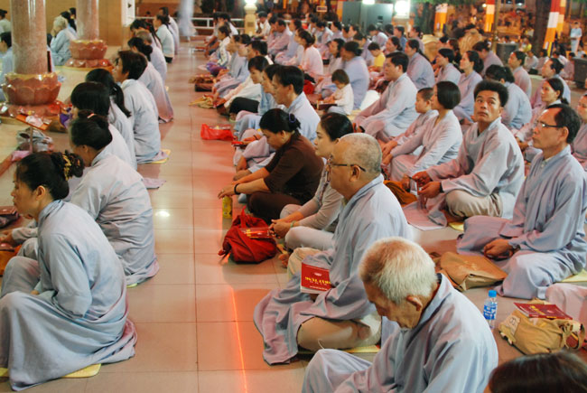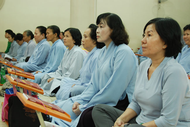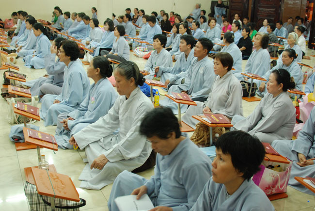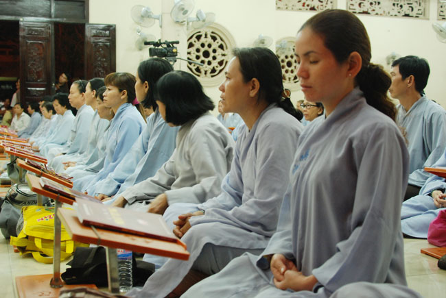 Vào 20h, khóa lễ kết thúc, đại chúng cùng tụng đọc 5 giới của người Phật tử tại gia.