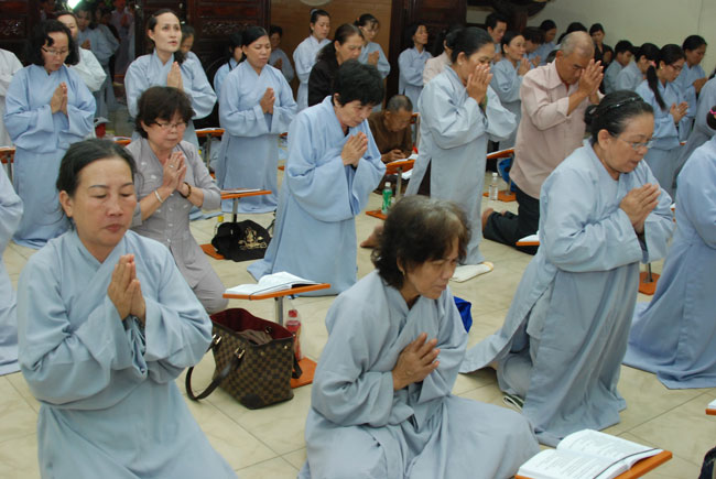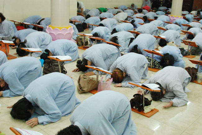 Sau thời pháp, Thiện nam tín nữ Phật tử nhất tâm thành kính bước vào khóa lễ Sám hối Hồng danh bảo sám.