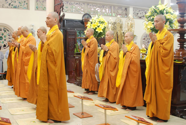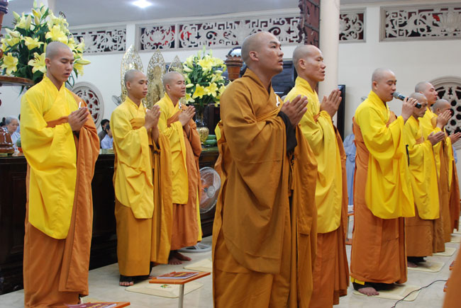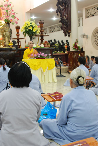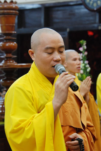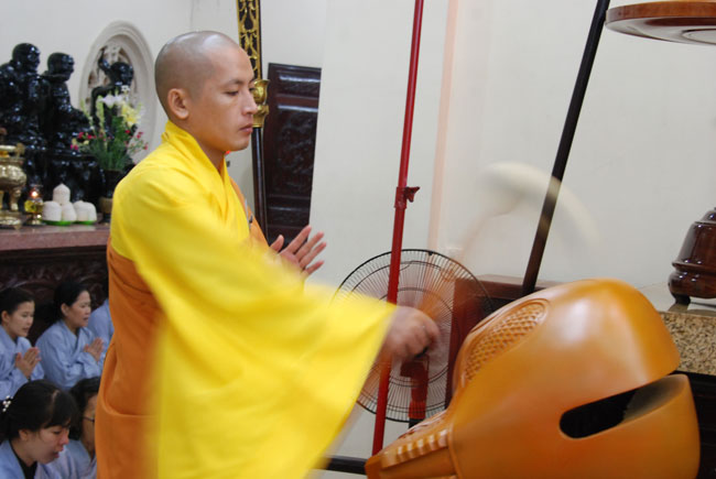 Trước lúc khóa lễ diễn ra, thầy Thích Tâm Đại – Tăng chúng chùa Hoằng Pháp đã có thời pháp ngắn gửi đến toàn thể đại chúng với đề tài “Tín Tâm Niệm Phật”.