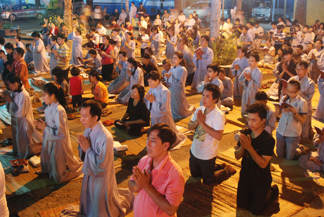Chiều tối ngày 2/11/2013 (29/9/Quý Tỵ), hàng ngàn thiện nam tín nữ Phật tử đã về chùa Hoằng Pháp tham dự khóa lễ sám hối.