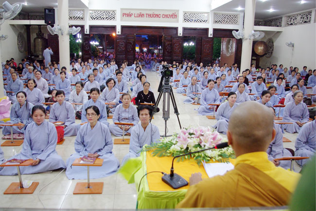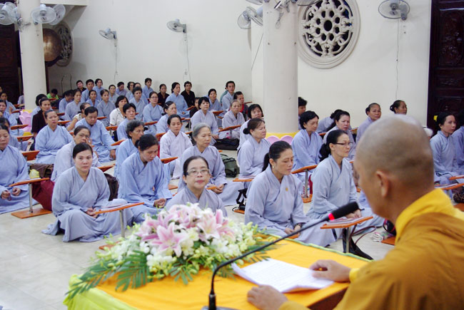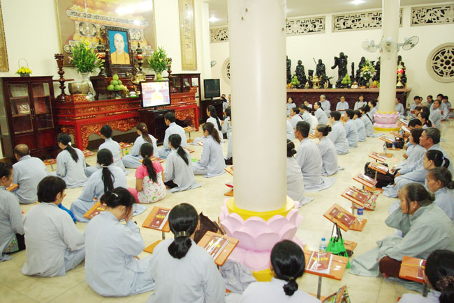 Trước khóa lễ, Đại đức Thích Tâm Đắc đã thuyết giảng thời pháp với chủ đề “Hoàn thiện bản thân”. Theo Đại đức, để hoàn thiện bản thân mỗi người cần trau dồi những đức tính căn bản đó là: thật thà, vị tha, tự cải thiện bản thân, chịu đựng những khó khăn về vật chất và tinh thần. Đại đức nhấn mạnh mỗi người cần thường xuyên, chuyên cần thực tập những đức tính này để tăng trưởng tình thương và trí tuệ, mang lại lợi lạc cho mình và tha nhân. Sau thời pháp thoại, thiện nam tín nữ bước vào khóa lễ sám hối.