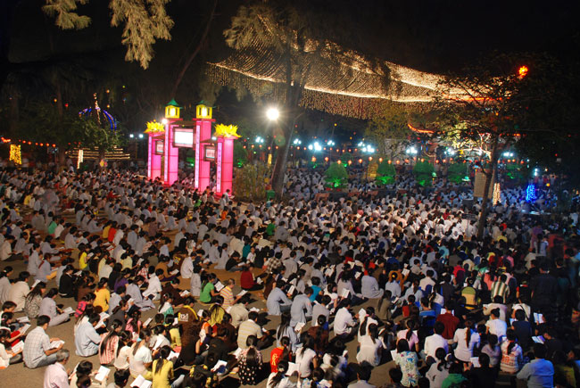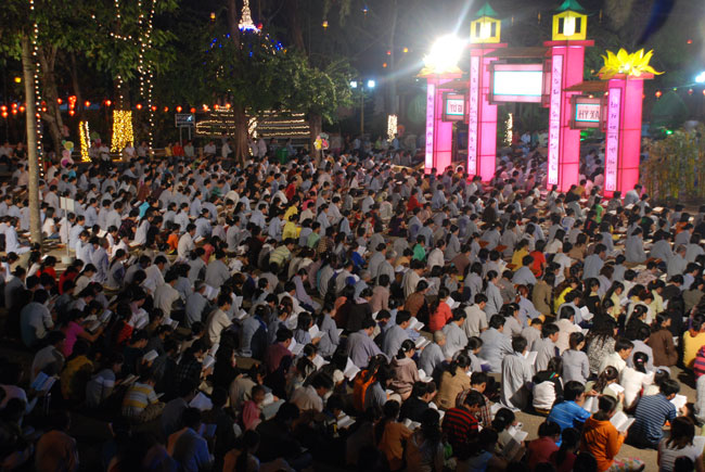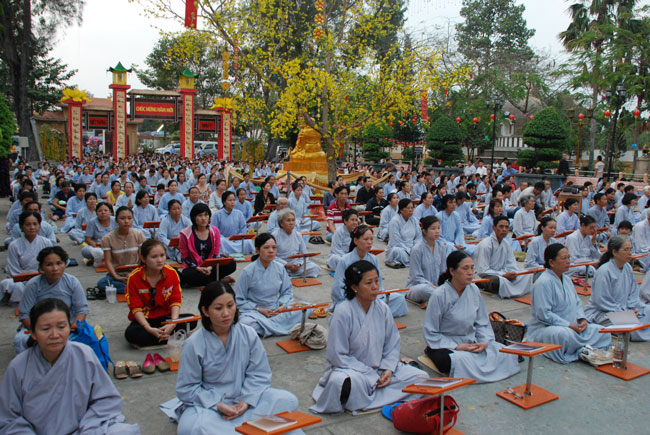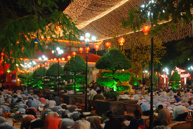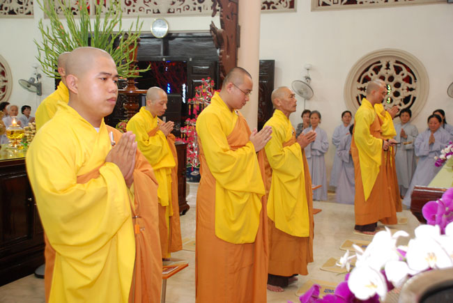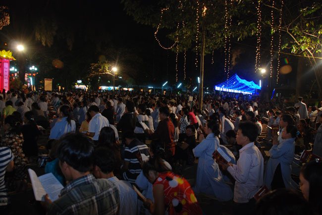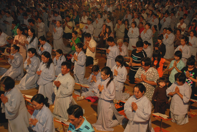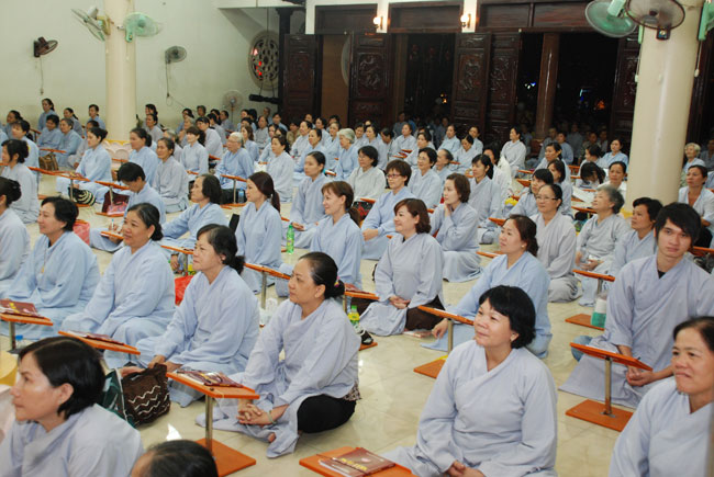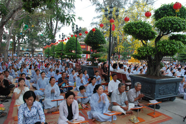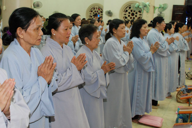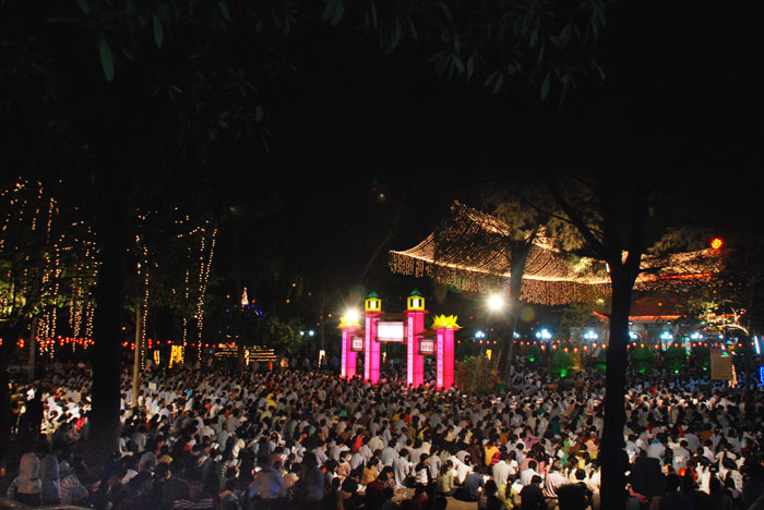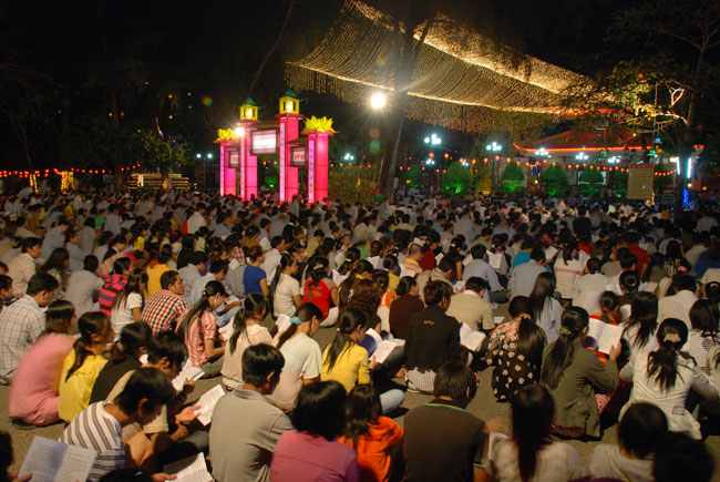 Mọi người tụng Hồng danh bảo sám và đồng thanh niệm Phật dưới ánh sáng đèn sân chùa không tỏa đủ khắp, nhưng chắc hẳn trong lòng người con Phật luôn được soi sáng dưới ánh đạo vàng của Chư Phật mười phương gia trì trong từng lời khấn nguyện chân thành, cầu nguyện chúng sinh được an lạc, âm siêu dương thới pháp giới chúng sinh đồng thành Phật đạo.