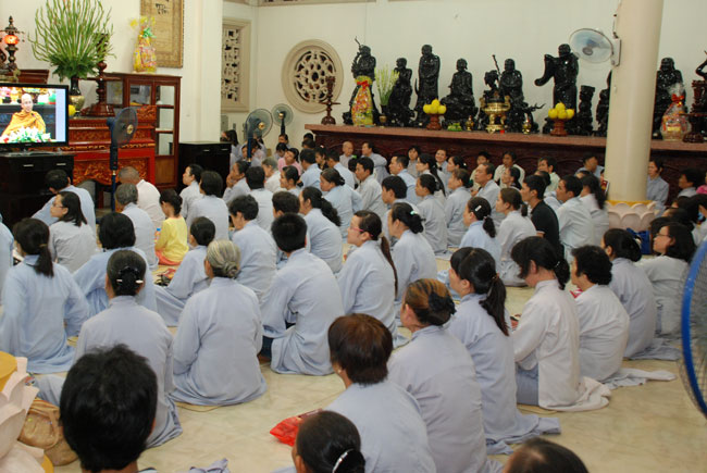 Cũng như thường lệ, trước khi vào thời sám hối, ban tổ chức dành khoảng một tiếng đồng hồ cho thời pháp thoại nhằm giúp quý thiện nam tín nữ hiểu thêm những giáo lý của nhà Phật để áp dụng vào đời sống. Lần này, Đại đức Thích Minh Triều tiến sĩ tâm lý học, du học tại Ấn Độ, nhận lời mời của bổn tự đã đến thăm và có thời pháp với đại chúng qua đề tài “Dư âm mùa xuân”. Thời pháp kết thúc ai cũng hoan hỷ và hướng về Tam bảo với lòng thành cung kính bắt đầu cho thời lễ sám hối.