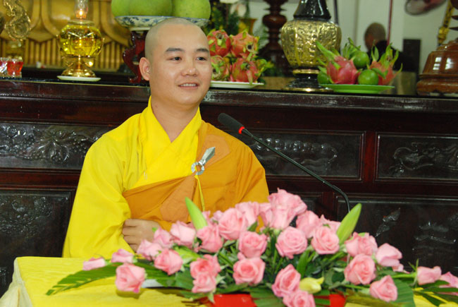 Thầy Thích Tâm Quốc thuyết giảng trước giờ sám hối