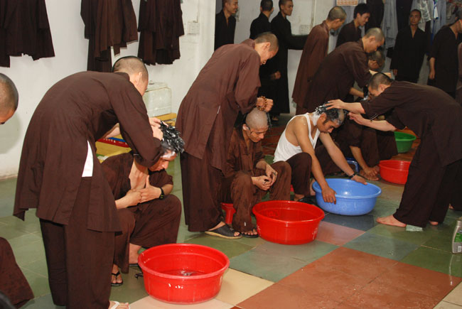 Ngoài những nghi lễ thông thường cho một buổi thế phát, các thiện nam này đã được nghe Thượng tọa trụ trì – Thích Chân Tính nêu ý nghĩa cũng như những khó khăn khi lựa chọn con đường theo đấng Thiện Thệ một cách ngắn gọn và súc tích.