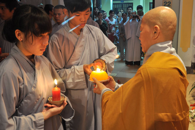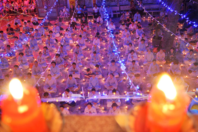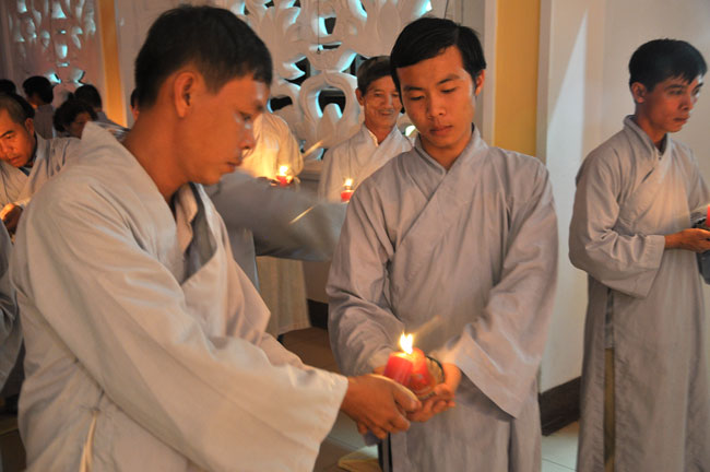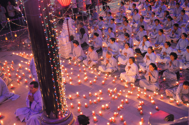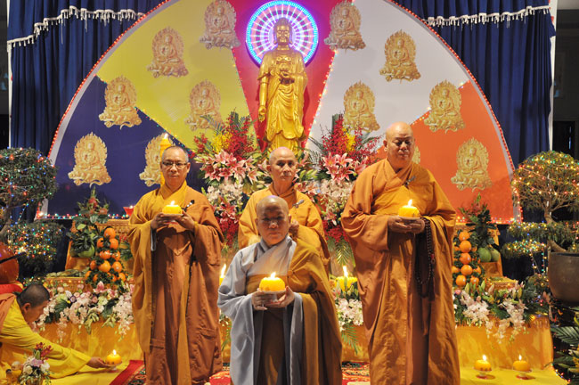 Mở đầu là phần đọc diễn văn khai mạc do Ni sư Thích Nữ Chúc Hải tuyên đọc. Sau nghi thức niêm hương bạch Phật là phần truyền đăng, đây là phần đẹp lung linh nhất trong đêm lễ. Những ngọn nến được thắp lên, tỏa mình trong đêm tối đã tạo thành một khung cảnh lung linh và huyền ảo. Mong sao những ánh sáng ấy sẽ mãi lan tỏa, lan tỏa khắp cõi nhân gian để soi sáng và dẫn lối cho chúng sinh thoát khỏi đường mê, quay về bến giác. Nhằm giúp đại chúng biết rõ hơn về những đại nguyện của đức từ phụ A Di Đà, Thượng tọa Thích Huệ Minh đã tuyên đọc 48 lời thệ nguyện của Ngài.