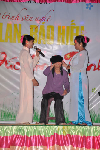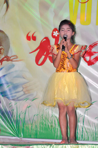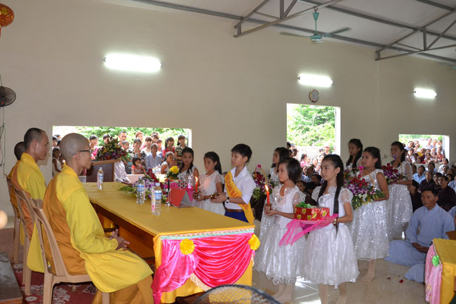 Chiều tối cùng ngày, đã diễn ra chương trình văn nghệ “Ân đức sinh thành” với 17 tiết mục do các em trong gia đình Phật tử chùa An Pháp thực hiện. Nhân dịp này, chùa An Pháp đã gửi tặng mỗi Phật tử đến tham dự một phần quà Pháp bảo – VCD Thọ Trì Tịnh Giới của Thượng tọa Thích Chân Tính và một số chuỗi hạt cho bà con Phật tử nơi đây.
