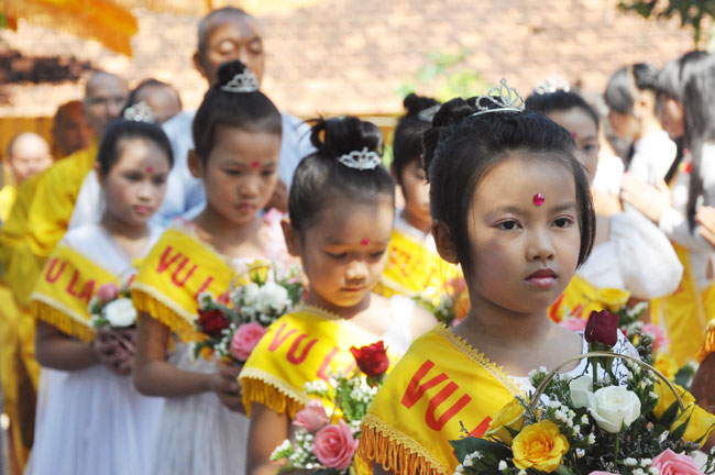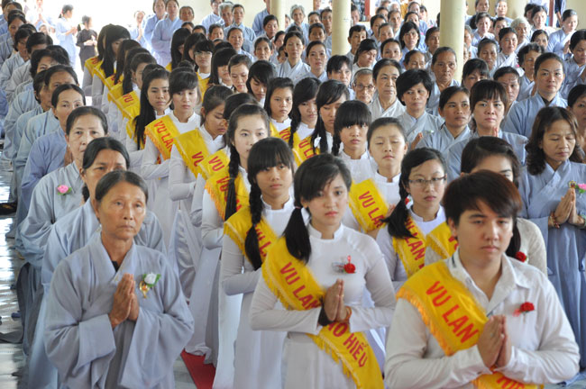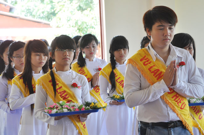 Chương trình buổi lễ gồm có những nghi thức như: dâng hoa cúng dường Tam Bảo, cài hoa hồng, dâng y cúng dường chư Tăng và tụng kinh Vu Lan.