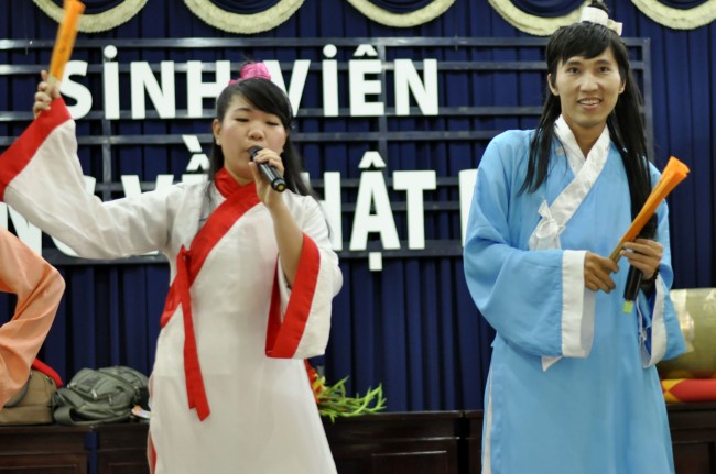 Sau thời kinh, các bạn sinh viên thưởng thức các tiết mục văn nghệ vui tươi đón mừng xuân Giáp Ngọ.