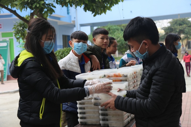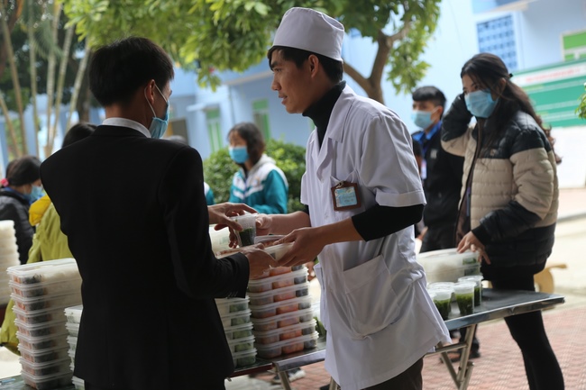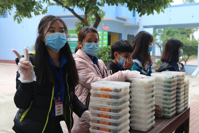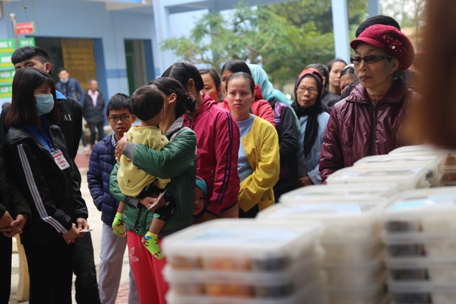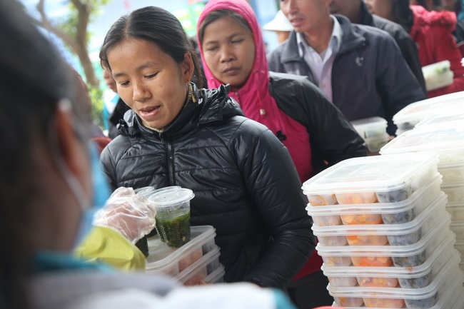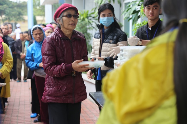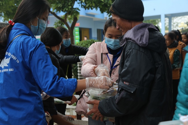 Buổi trưa, CLB Thanh thiếu niên Phật tử chùa Đống Cao tiếp tục tổ chức phát cơm chay như thường lệ tại Bệnh viện Nga Sơn.