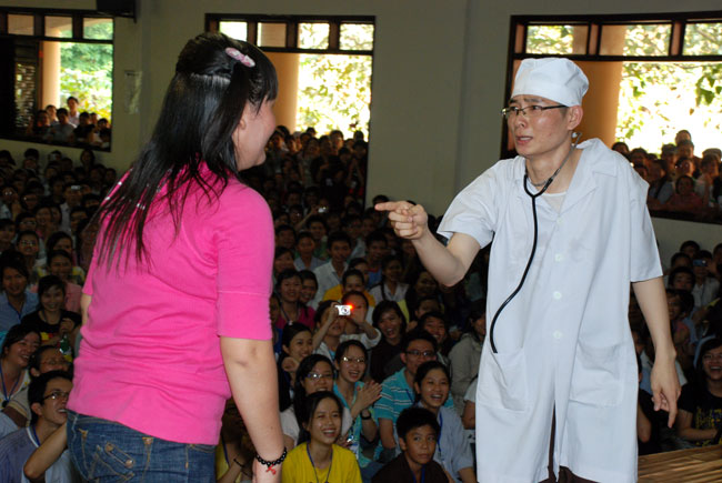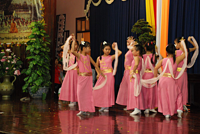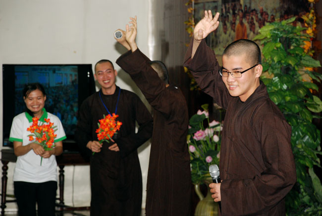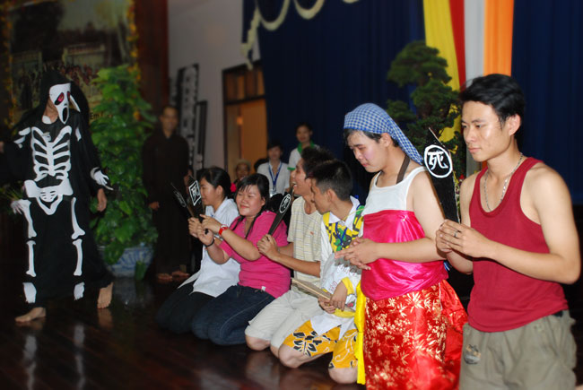 Vì đây là chương trình cuối năm, nên ngay đầu giờ chiều, cùng với quý thầy các bạn trẻ đã tổ chức “Ga la Hoằng Pháp”. Qua các tiết mục, các bạn cũng có thể cảm nhận một phần Phật pháp với lối diễn xuất sáng tạo của các bạn trẻ, cũng như các bài hát về Đạo Phật sâu sắc của quý thầy.