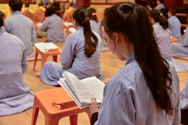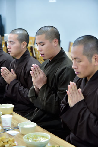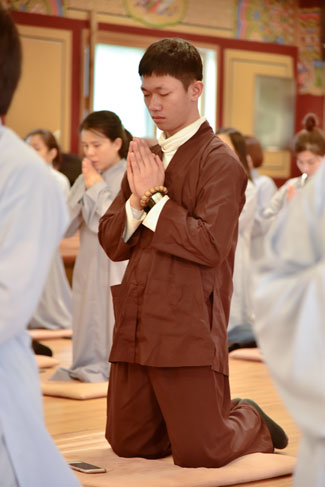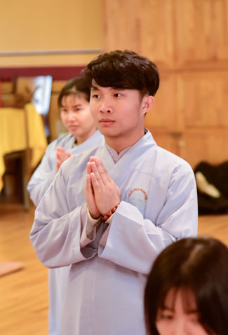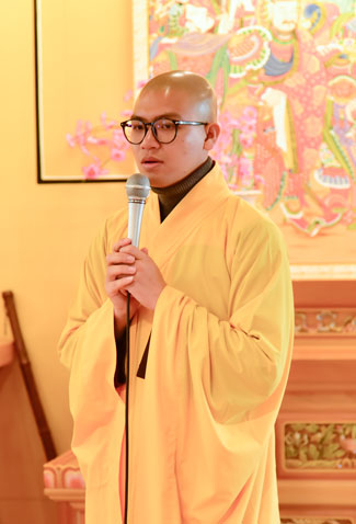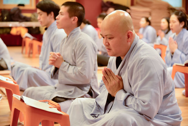 Buổi chiều cùng ngày, quý thầy đã hướng dẫn quý Phật tử tụng kinh Tám Điều – Từ Tâm. Sau đó, quý thầy trong đoàn đã dâng lời tri ân đến thầy trụ trì và thầy phó trụ trì chùa Dược Sư, trong những ngày qua đã tạo điều kiện cho đoàn lưu trú và tu tập. Thầy Hoaung, trụ trì chùa Dược Sư đã có đôi lời nhắn nhủ đến quý thầy trong đoàn cùng quý Phật tử.