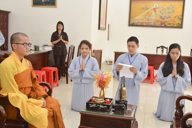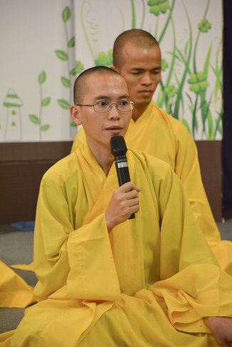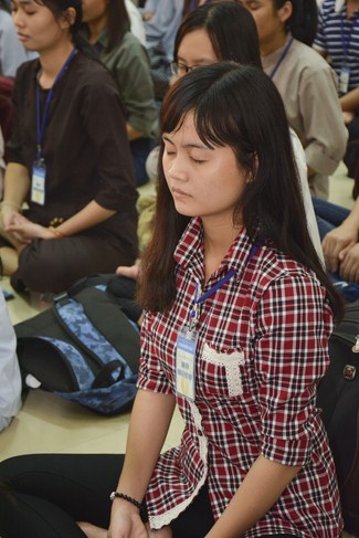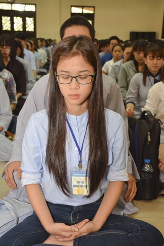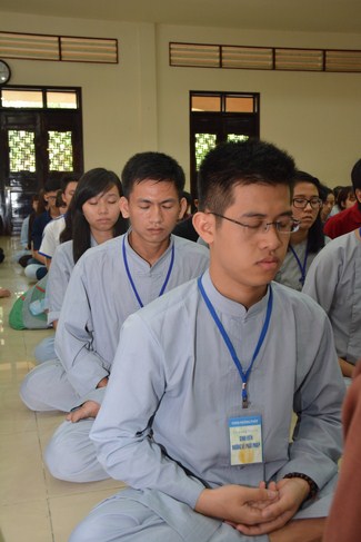 Buổi chiều cùng ngày, Đại đức Thích Tâm Nguyên, chư Tăng chùa Hoằng Pháp đã hướng dẫn các bạn khóa sinh thực tập thiền. Sau đó, quý thầy đã tham gia giải đáp các thắc mắc xoay quanh sự tu học cũng như cuộc sống của các bạn. Buổi pháp đàm thật ý nghĩa khi những vướng mắc tâm lý trên mọi lĩnh vực đã được các bạn bày tỏ cùng quý thầy để tìm ra những phương pháp giải quyết tối ưu nhất. Đặc biệt, quý thầy đã hướng dẫn các bạn uyển chuyển áp dụng lời Phật dạy, áp dụng phương pháp thiền để chuyển hóa, khắc phục những khó khăn mà vươn lên trong cuộc sống.