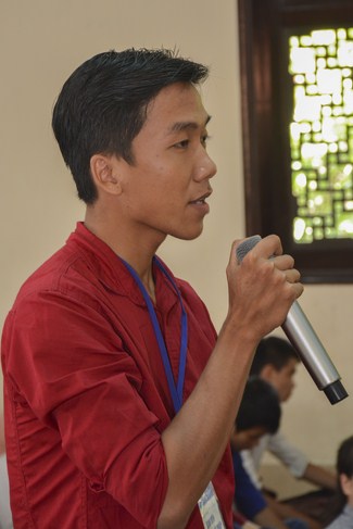 Vào buổi sáng, sau khi dùng điểm tâm các bạn tập trung về giảng đường chính để lắng nghe thời pháp thoại từ Đại đức Thích Tâm Tiến, chư Tăng chùa Hoằng Pháp với chủ đề "Khi Nào Ta Lớn!".