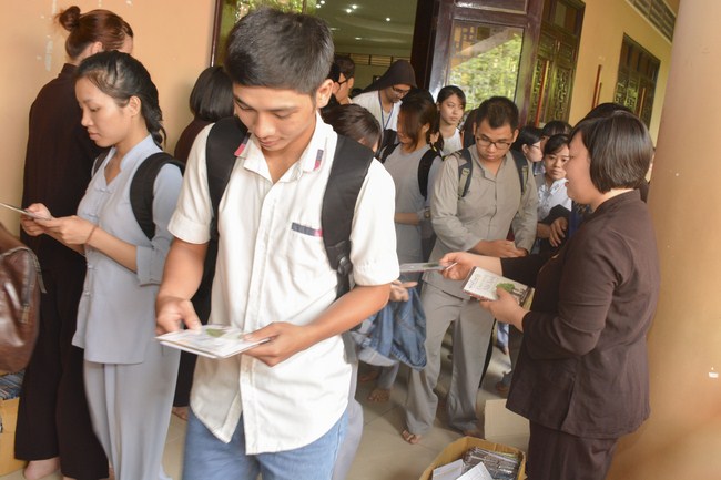Ngày tu kết thúc trong niềm hoan hỷ của tất cả mọi người, khi ra về mỗi bạn nhận được một phần quà pháp bảo gồm: sách Đúng Người Đúng Việc; DVD Hoa Mặt Trời Kỳ 10; VCD 8 Pháp Thế Gian.