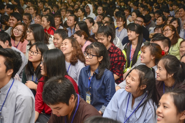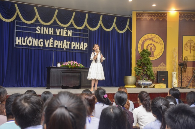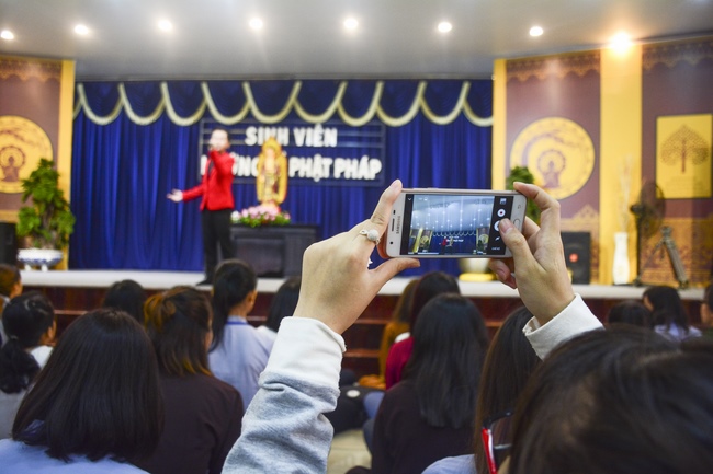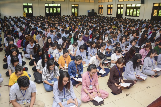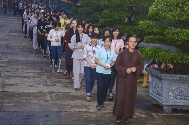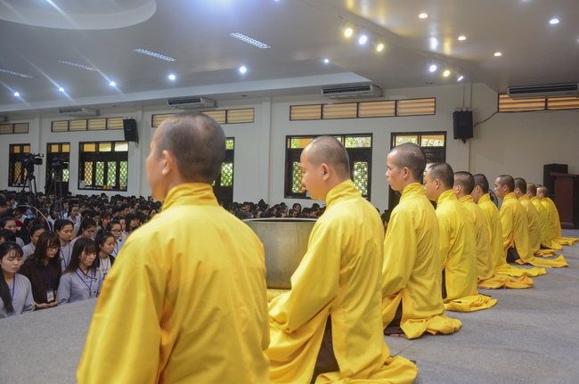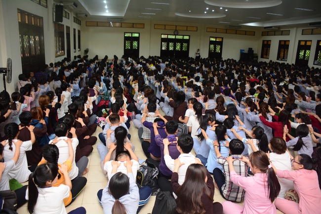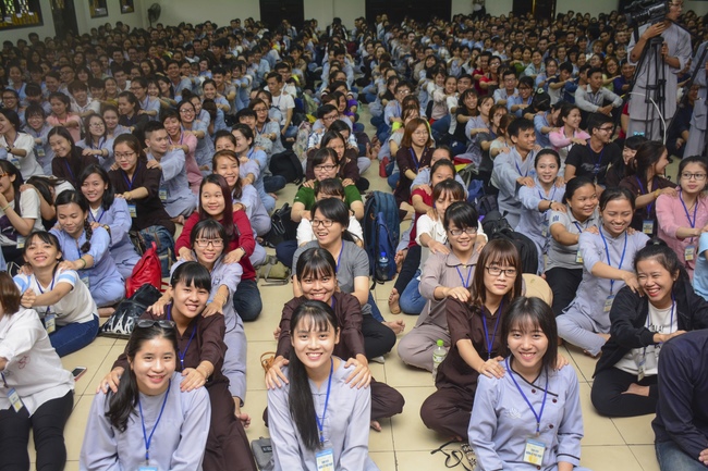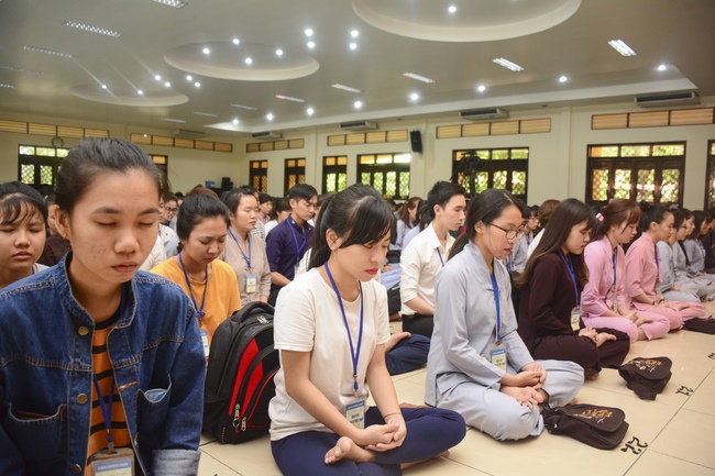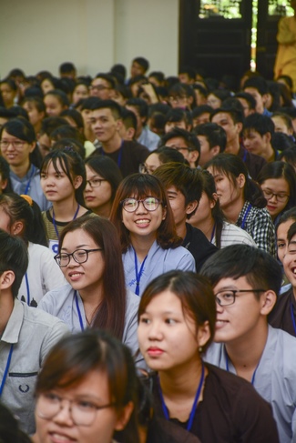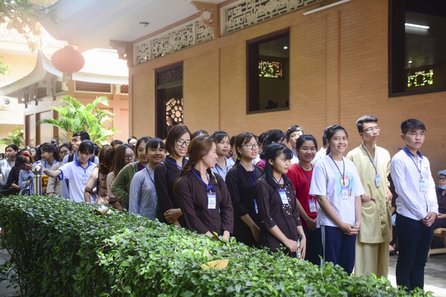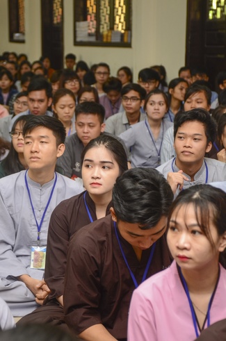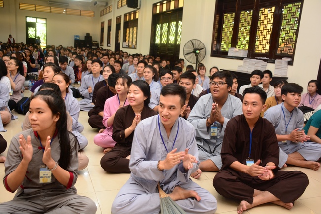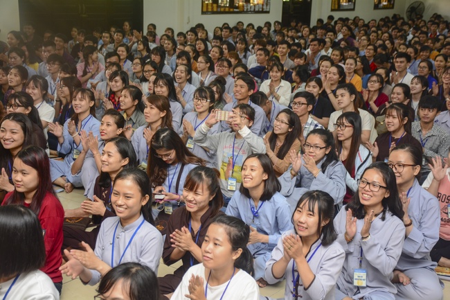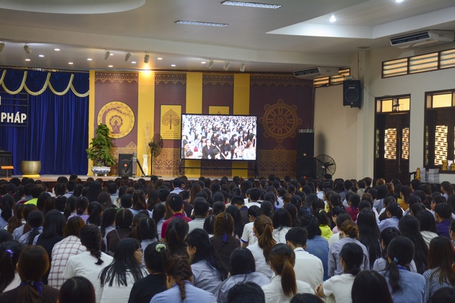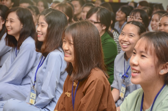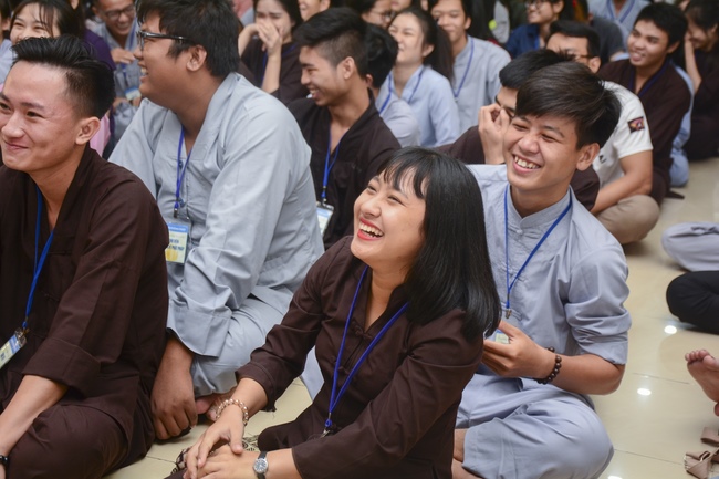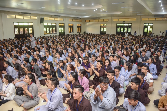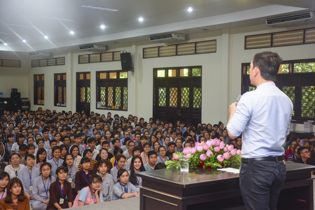 Buổi chiều cùng ngày, các bạn tập trung về giảng đường chính để tiếp tục thời khóa tu học. Sau giờ tịnh tọa cùng chư Tăng bổn tự, các bạn được lắng nghe thầy Nguyễn Hoàng Minh Tân – giảng viên Trung tâm đào tạo tài năng trẻ Châu Á Thái Bình Dương chia sẻ qua đề tài “Những người bạn thân trong cuộc đời”.