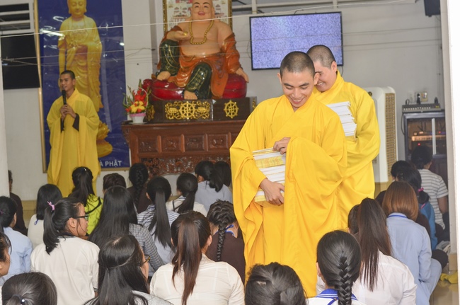 Ngày tu kết thúc trong niềm hoan hỷ của tất cả mọi người, khi ra về mỗi bạn nhận được một phần quà pháp bảo gồm: sách Biết Lỗi Nên Sửa, Vẫn Còn Hạnh Phúc.