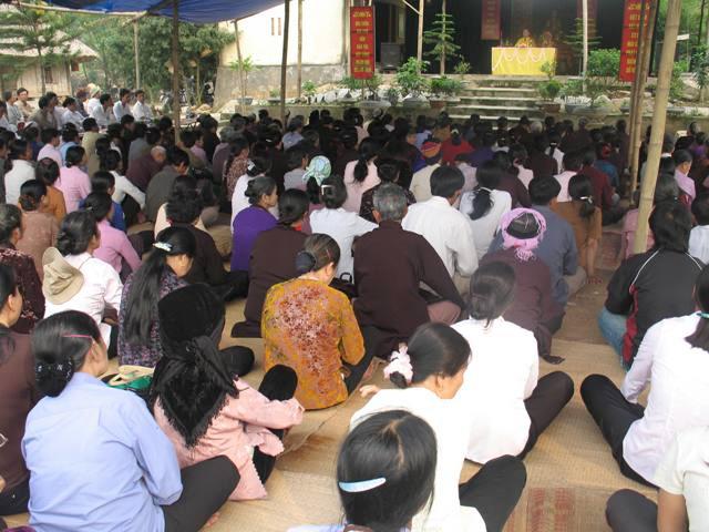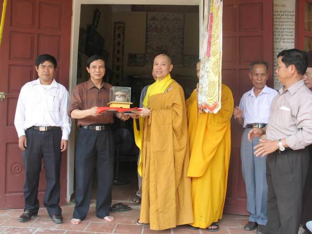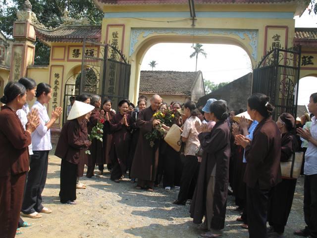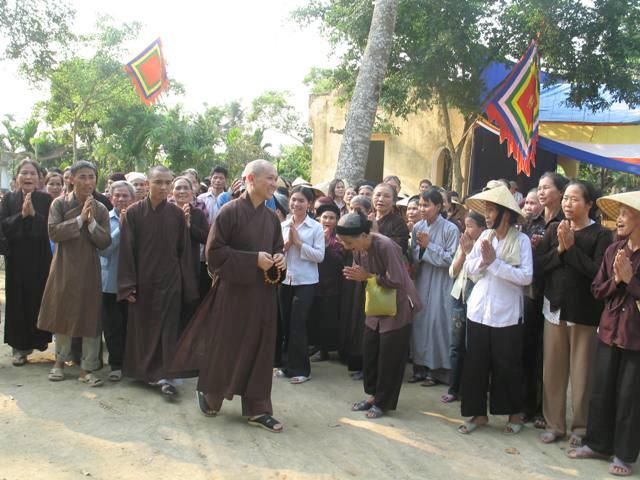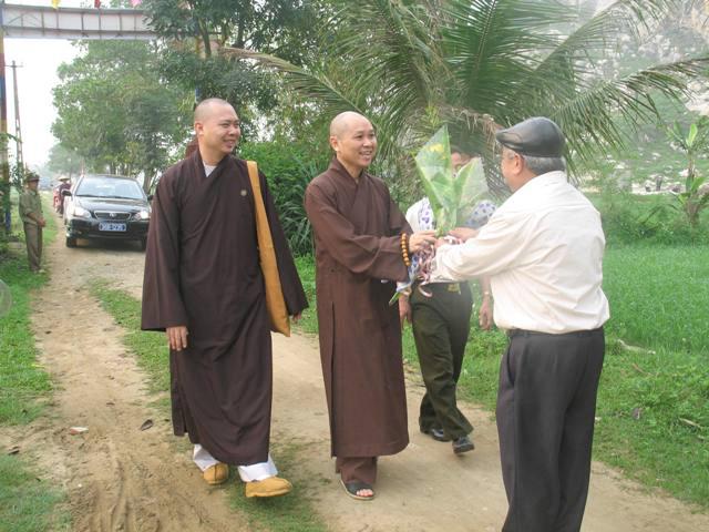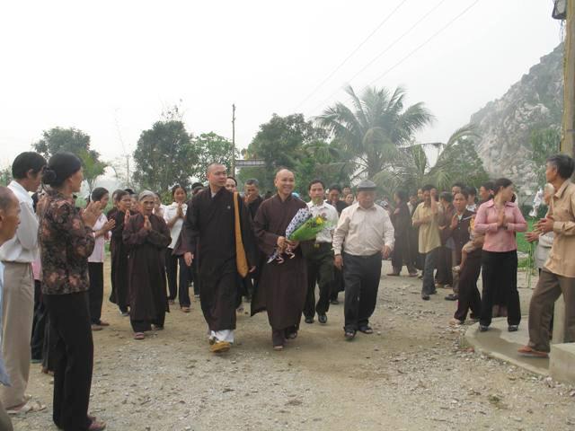 Để đến được chùa, chúng ta phải băng qua những cánh đồng lúa bao la xanh thẳm. Những mảnh ruộng lớn nhỏ đan xen vào nhau, những con đường đất đỏ chạy dài về phía chân trời như tựa thể một tấm huỳnh y giải thoát của chư Phật, chư Bồ-tát luôn che chở, gia hộ cho mọi người. Từ xa, chúng ta có thể nhìn thấy tượng bồ tát Quan Thế Âm nằm lưng chừng núi, lúc ẩn lúc hiện như thể đang lắng nghe, thấu hiểu mọi khổ niềm đau của cuộc đời. Lúc đến đây, quý thầy rất hoan hỷ và vui mừng khi được sự tiếp đón rất nồng nhiệt của chính quyền cũng như là tín đồ Phật tử nơi đây. Sau đo, TT. Thích chân tính đã có buổi thuyết pháp và trao đổi Phật pháp với mọi người về ý nghĩa chữ tu. Thượng tọa đã giải thích tu nghĩa là gì? Tại sao chúng ta phải tu? Tu đem lại những lơi ích gì? Ngoài ra, thầy còn khuyên mọi người nên tinh tấn niệm Phật, thúc liễm thân tâm, chỉ có như vậy mới đem lại lợi ích hạnh phúc cho bản thân, gia đình và xã hội. Đặc biệt hơn là các cấp chính quyền nơi đây cũng đã đến thăm hỏi và nghe thầy thuyết giảng, sau đó thay mặt cho toàn thể nhân dân phát biểu ý kiến và nói lời tri ân đến với phái đoàn. Trước khi ra về, Thượng tọa đã tặng hơn 200 phần quà pháp bảo đến với mọi người.