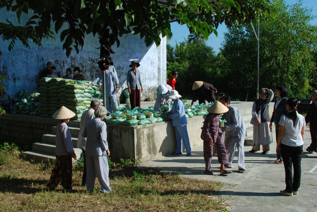 Được biết trong xã hiện có 275 hộ nghèo và cận nghèo theo diện chính sách được địa phương xác nhận. Trong số đó có nhiều cụ gia neo đơn, một số gia đình đông con nên vấn đề trang trải kinh phí cho việc ăn học gặp nhiều khó khăn. Trong chuyến từ thiện lần này quý thầy và Phật tử đã gởi phần quà gồm: gạo, dầu ăn, nước tương... Tổng giá trị quà tặng hơn 54 triệu đồng. Đây là số tiền do Phật tử Đồng Huyền chùa Vĩnh Nghiêm ở Úc tài trợ trong chuyến về thăm quê hương.