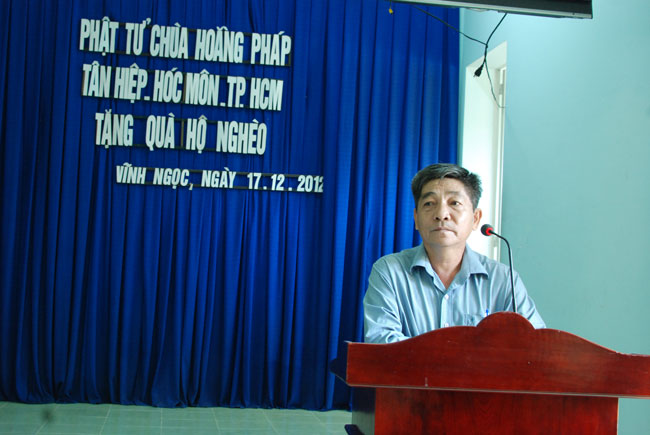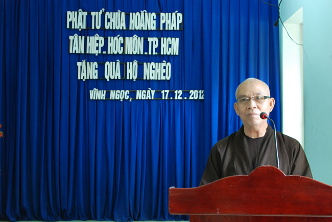 Sáng ngày 17/12/2012 (nhằm ngày 5/11 Nhâm Thìn) được sự chỉ dạy của Thượng tọa Trụ trì, đoàn từ thiện chùa Hoằng Pháp do thầy Thích Tâm Huệ làm trưởng đoàn đã đến xã Vĩnh Ngọc, TP. Nha Trang, tỉnh Khánh Hòa để tặng quà cho những hộ dân nghèo tại đây.