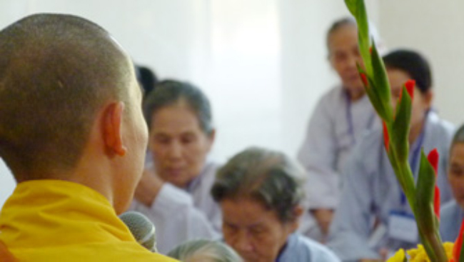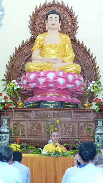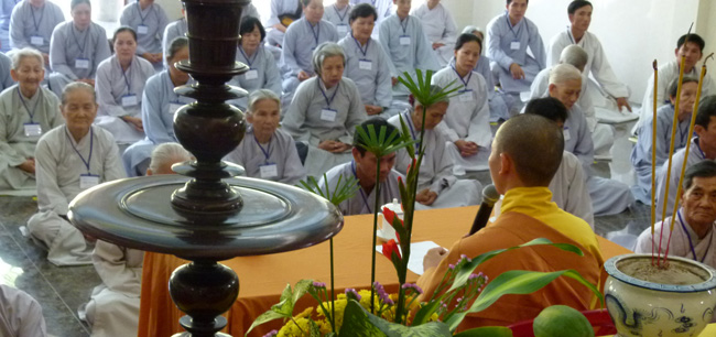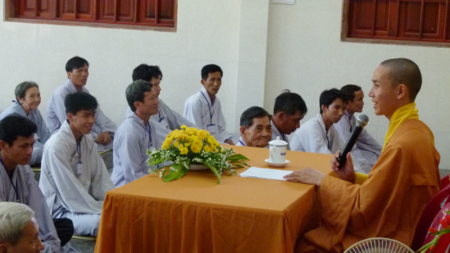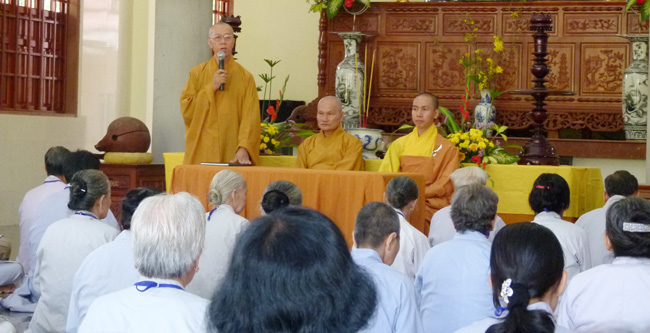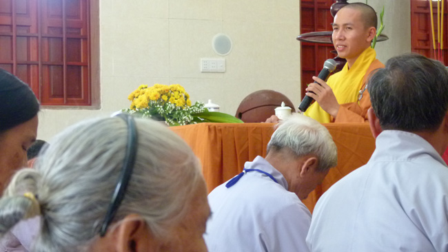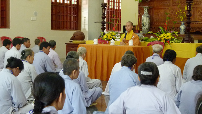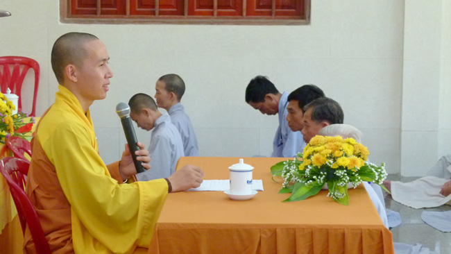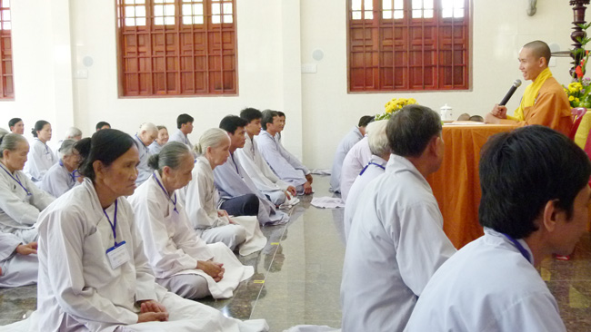 Cũng trong buổi khai khóa, Đại đức Thích Tâm Từ đã có thời pháp thoại để động viên, khích lệ tinh thần tu tập của quý Phật tử. Trong đó, chủ yếu xoay quanh các vấn đề về trách nhiệm và bổn phận của người Phật tử tại gia phải biết áp dụng lời Phật dạy vào đời sống hằng ngày cũng như trong việc tu tập. Cuộc sống vốn nhiều bộn bề lo toan, khiến con người luôn chạy theo các ngũ dục hiện tại mà quên đi việc định hướng cho tương lai. Bằng cách tu học Phật pháp, tạo dựng công đức lành ngang qua việc thực hành bố thí, phóng sanh, ăn chay… chỉ có như vậy mới gọi là người Phật tử chân chánh.