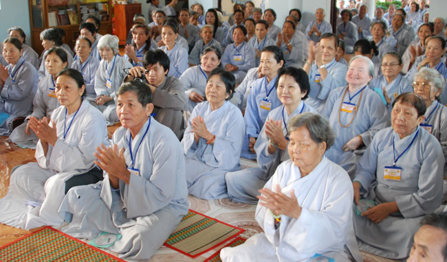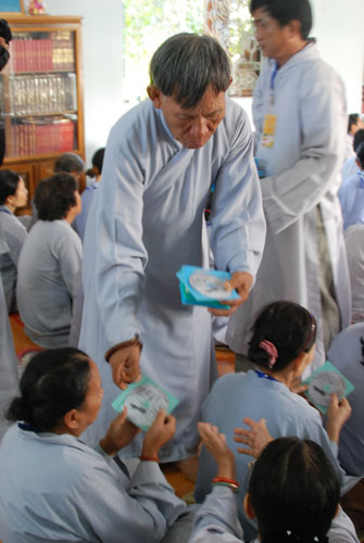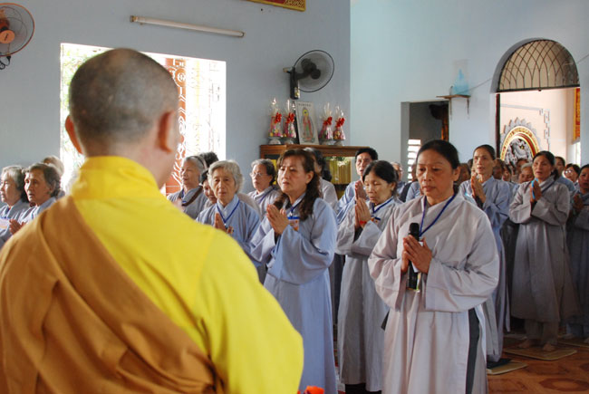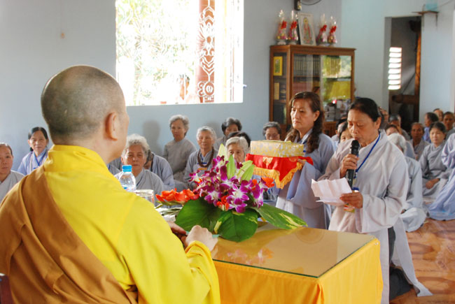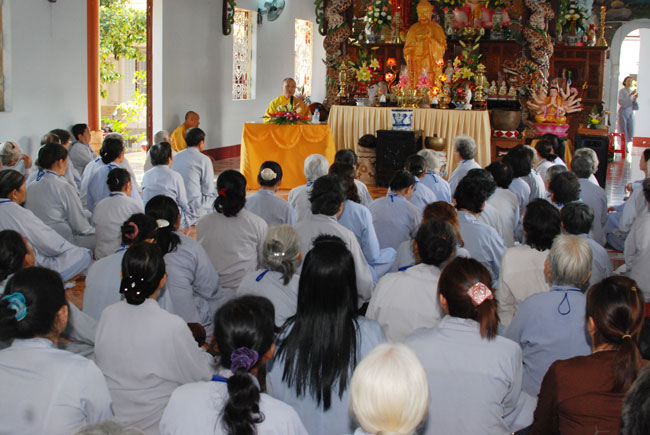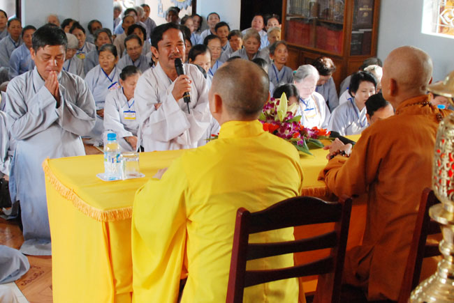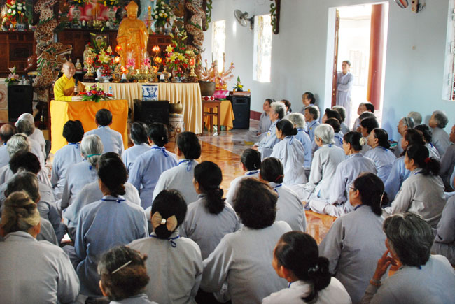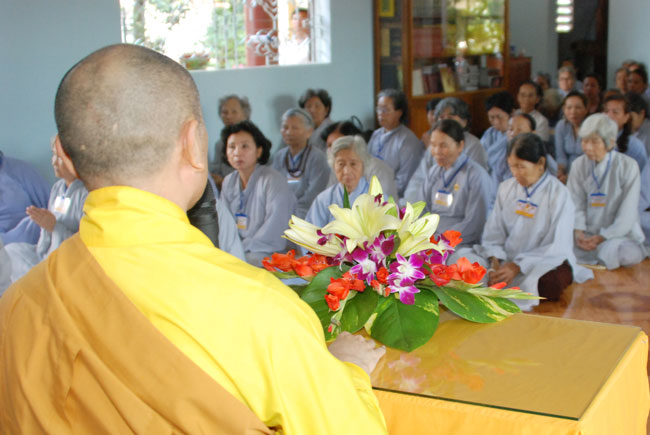 Sau phần nghi thức khai khóa tu niệm phật, Thượng tọa Thích Chân Tính đã có thời pháp khuyến tấn Phật tử. Nội dung buổi nói chuyện Thượng tọa khuyên mọi người hãy tin sâu nhân quả, không nên quan niệm năm rồng sinh con sau này sẽ là người có địa vị, quyền thế trong xã hội. Không phải năm con gì thì sinh con sẽ ảnh hưởng tính cách của con vật đó. Người Trung Quốc đặt tên con vật để phân biệt năm này với năm khác, không phải năm con rồng có rồng xuất hiện hoặc sinh con sẽ thăng quan tiến chức như rồng bay cao. Muốn con tốt thì cha mẹ phải tốt. Cha là hạt giống, mẹ là thửa ruộng – giống tốt ruộng tốt chăm sóc tốt sẽ có đứa con tốt. Đó là nhân quả rõ ràng.
