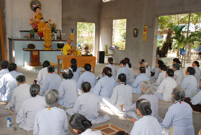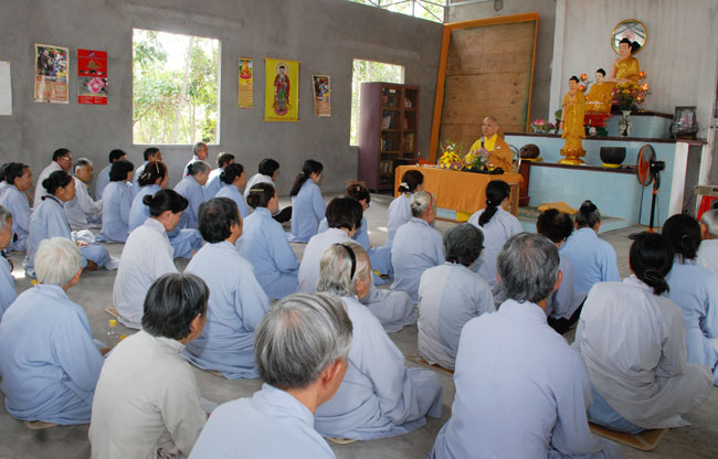 Trong thời pháp Thượng tọa đã chia sẻ với đại chúng về vấn đề tương lai của cuộc sống hiện tại cũng như khi từ giã cõi đời này. Một người học sinh muốn trở thành thầy giáo phải nỗ lực học, một người làm nông muốn được bội thu phải siêng trồng tỉa chăm sóc, một người đi buôn muốn có lãi phải biết tính toán chịu khó làm việc. Cũng như thế, một người học Phật phải có định hướng tương lai rõ ràng. Muốn có quả thì phải gieo nhân, muốn hiện tại được an vui hạnh phúc phải làm lành lánh dữ, tu học Phật pháp, muốn sau này được tái sanh làm người phải tu ngũ giới, muốn sinh về cõi trời phải tu thập thiện, muốn sinh về thế giới của đức Phật A Di Đà phải siêng tinh tấn niệm Phật, tu nhân tích đức. Khi chúng ta có định hướng tương lai rõ rệt thì mới nỗ lực thực hiện để đạt được mục đích.