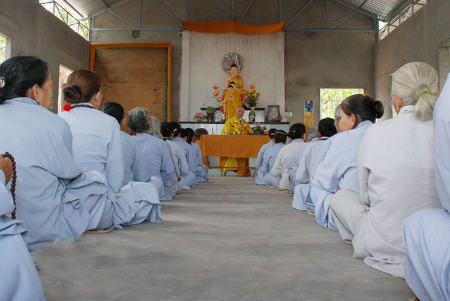 Được biết, đây là ngôi chùa vùng xa, nhiều công trình nâng cấp vẫn còn dở dang vì thiếu kinh phí, nhưng Thầy trụ trì chùa Pháp Hiển đã cố gắng hết sức mình để xây dựng giảng đường cho Phật tử có chỗ tu học. Lần tu đầu tiên được khai khóa vào tháng 5-2008 và duy trì cho đến ngày hôm nay, mỗi khóa ước tính có hơn100 Phật tử về tu học.