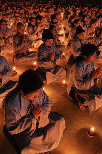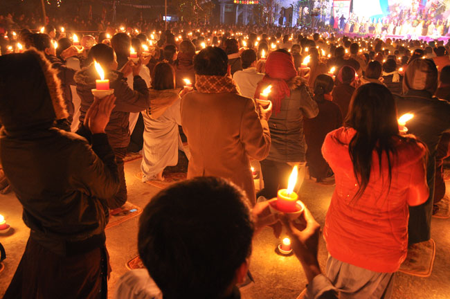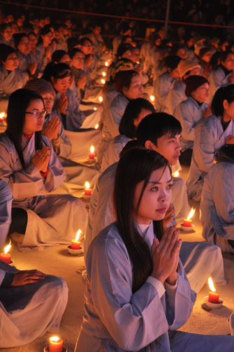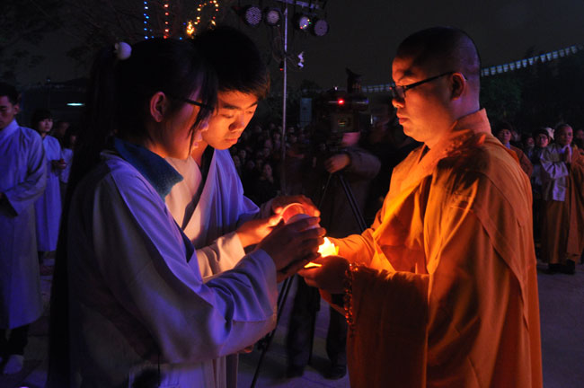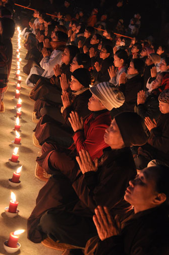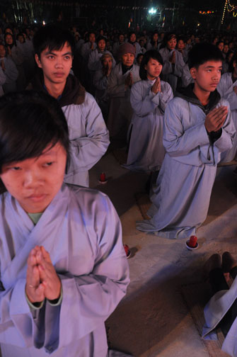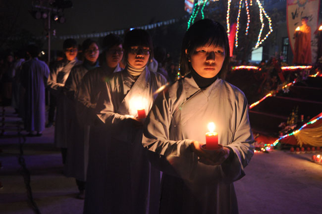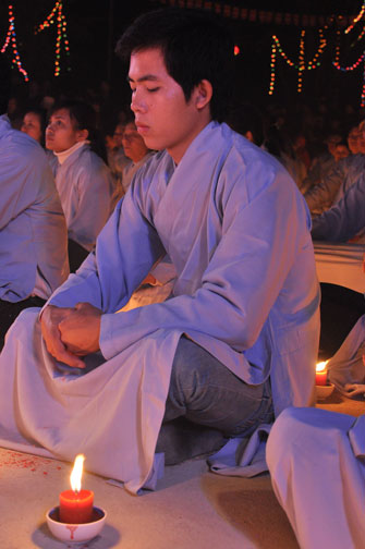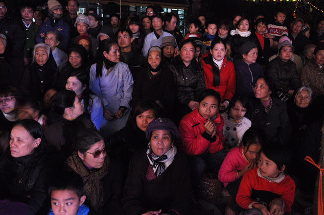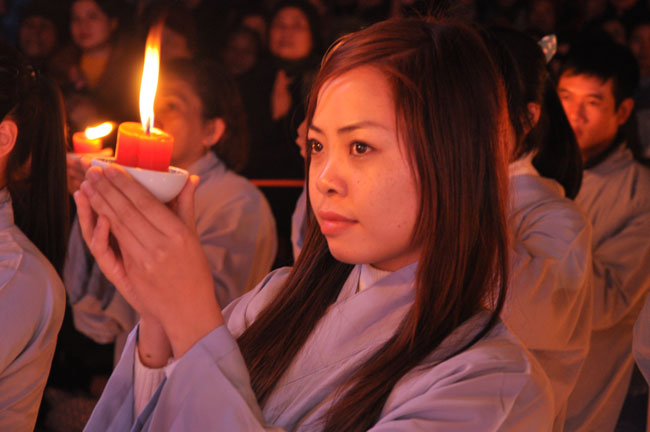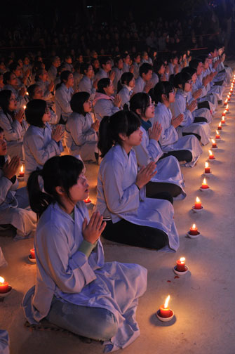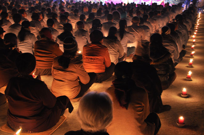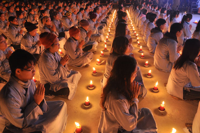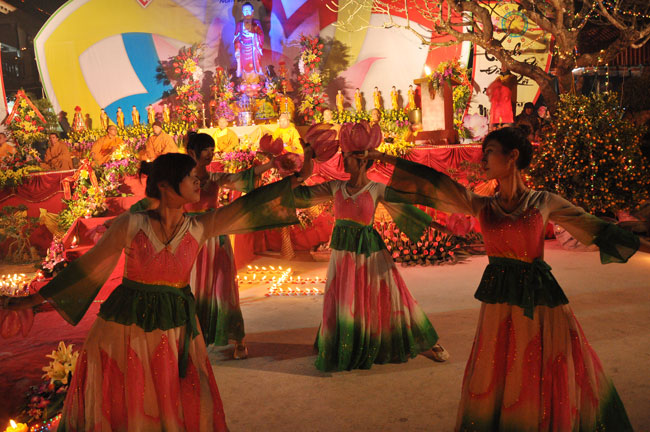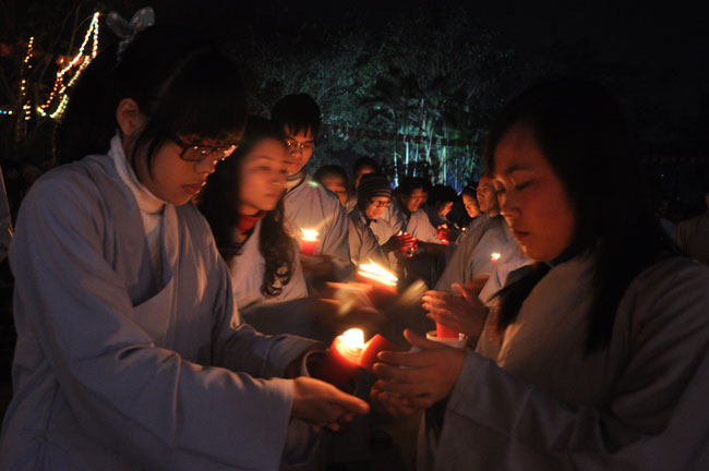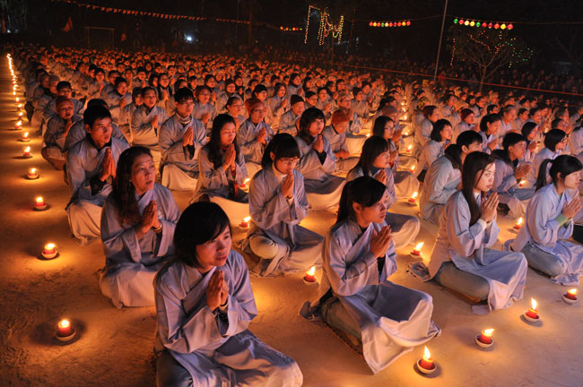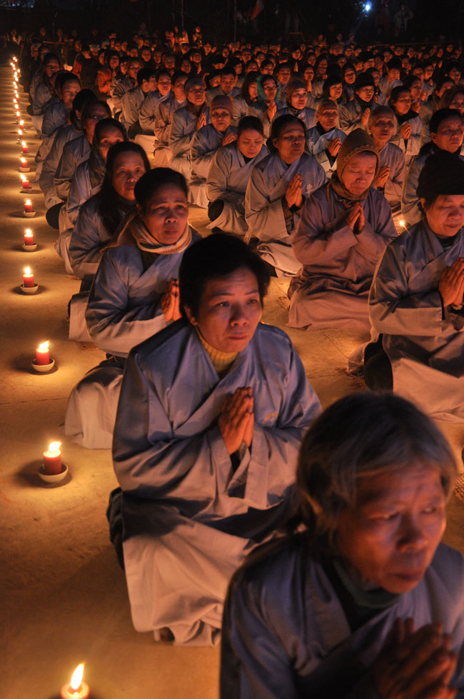 Buổi tối 19h00, hàng nghìn Phật tử và dân làng địa phương đã vân tập trang nghiêm trước sân lễ để được chiêm ngưỡng đêm hội hoa đăng. Thượng tọa cùng chư tôn đức Tăng Ni với màu y vàng rực rỡ, từng bước an lạc tiến về lễ đài chứng minh cho buổi lễ trong tiếng niệm Phật trầm bổng cung nghinh của quý Phật tử. Qua phần nghi lễ , Thượng tọa ban đạo từ cho chúng hội nhận biết được vấn đề Tự lực và Tha Lực. Cuối cùng Thượng tọa khuyên đại chúng hãy tự mình tinh tấn tu tập và nương nhờ vào cảnh giới của Chư Phật để chóng được giải thoát.