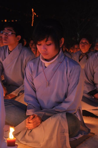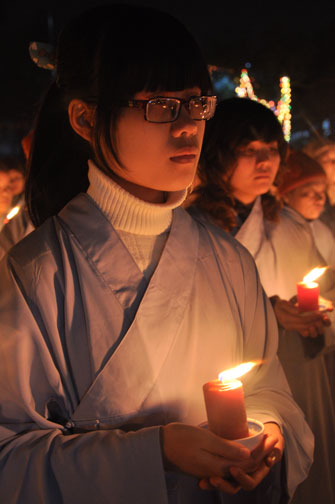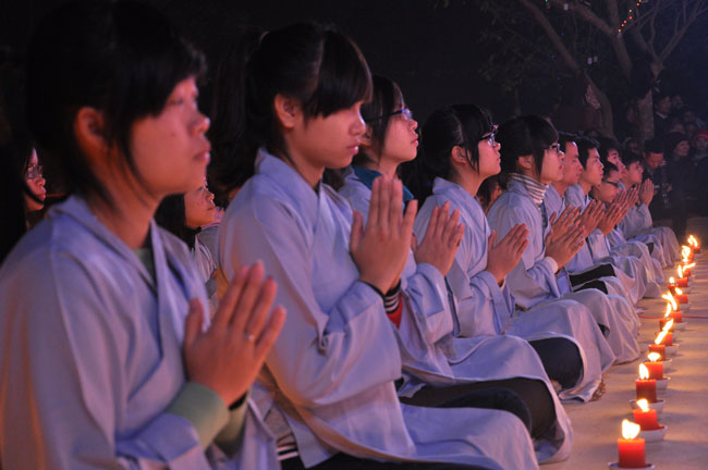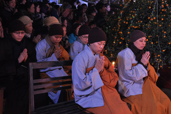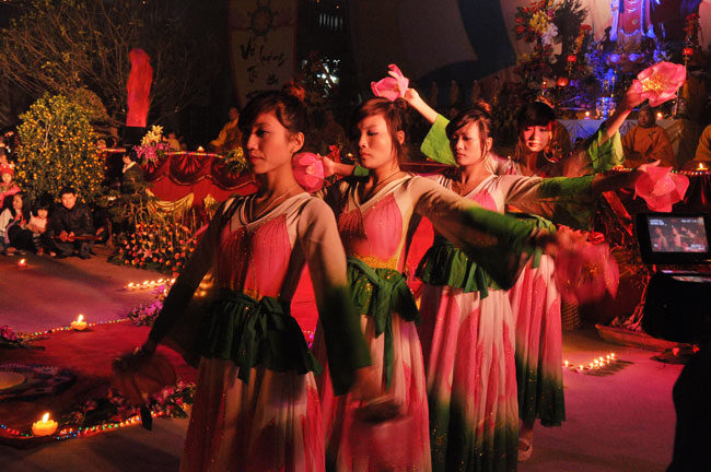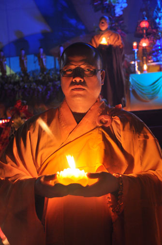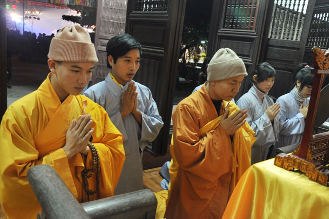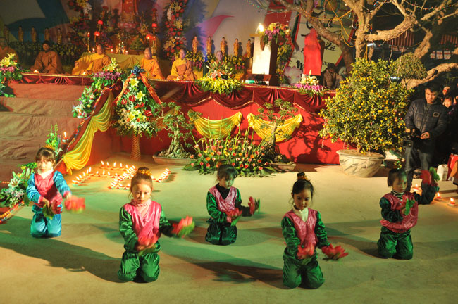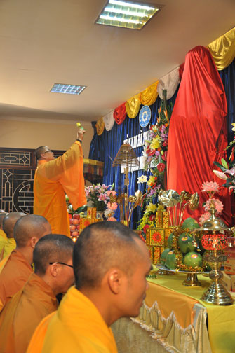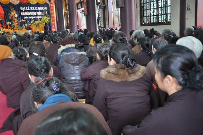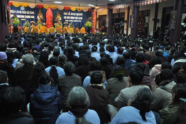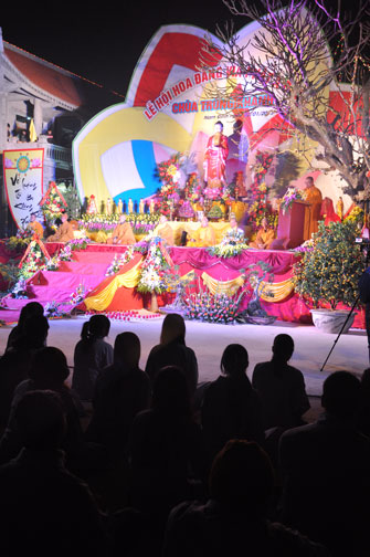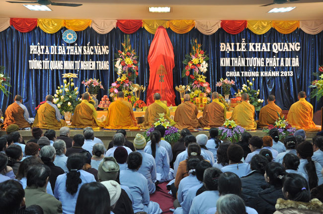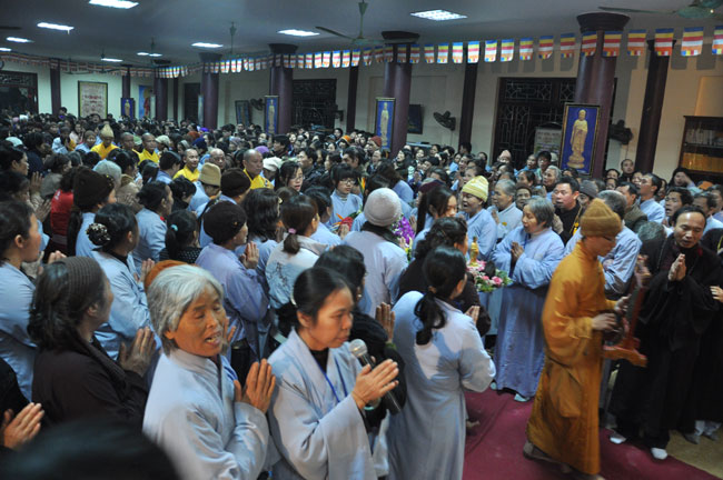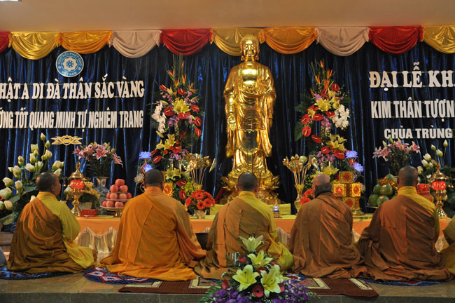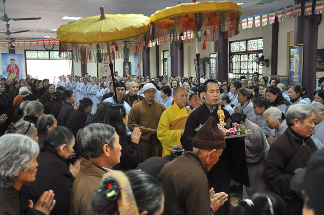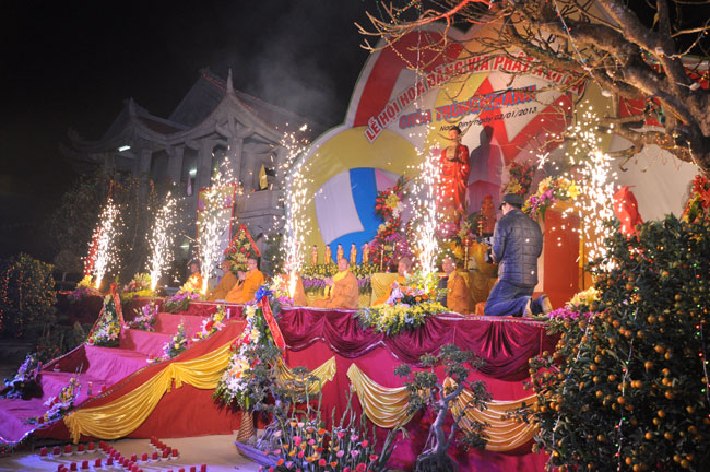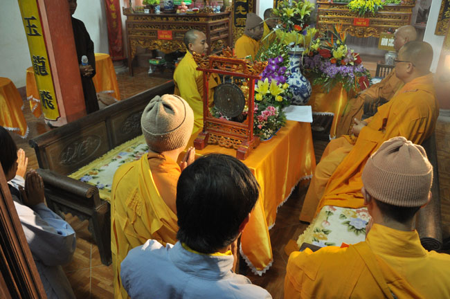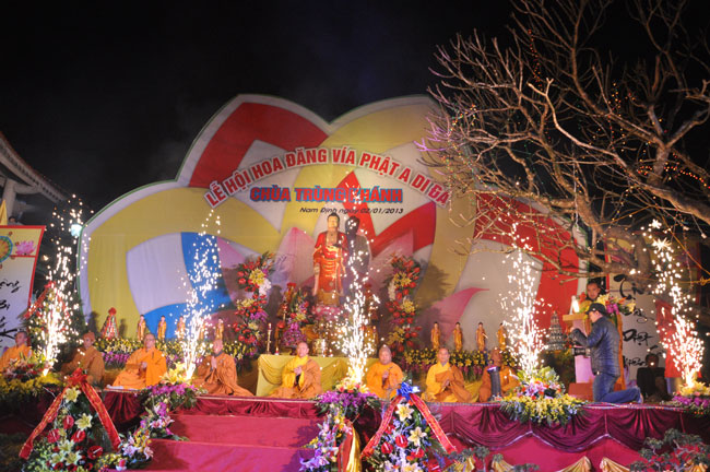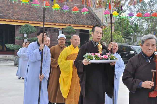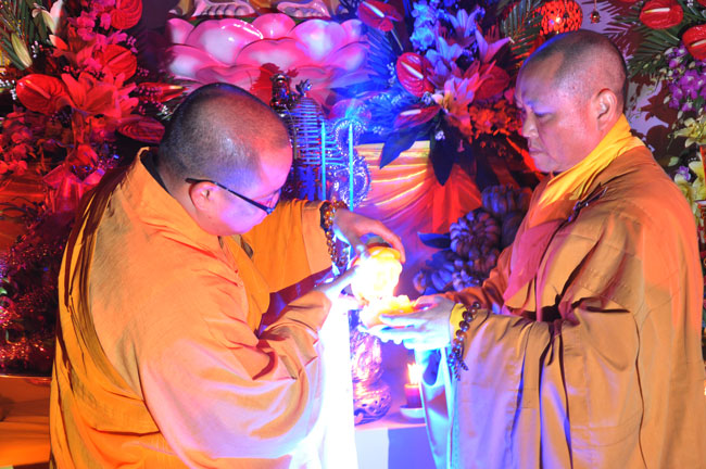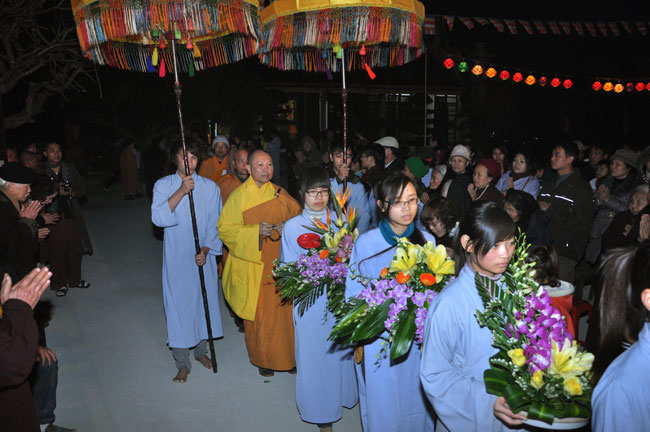 Sau buổi lễ hoa đăng, Đại đức trụ trì cung thỉnh chư tôn đức Tăng Ni quang lâm giảng đường cử hành lễ an vị tượng Phật A Di Đà bằng đồng. Buổi lễ kết thúc vào lúc 22h00 trong niềm hoan hỷ của người con Phật.
