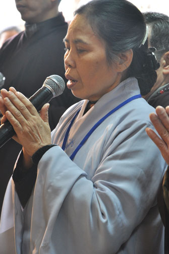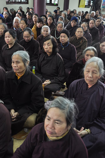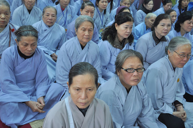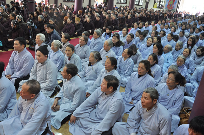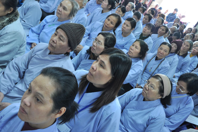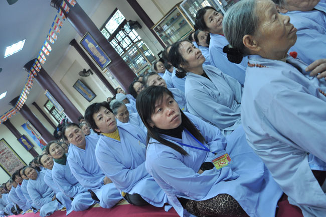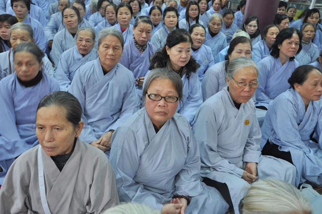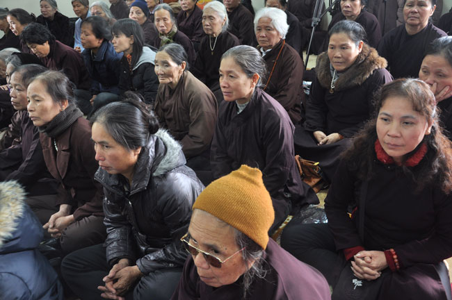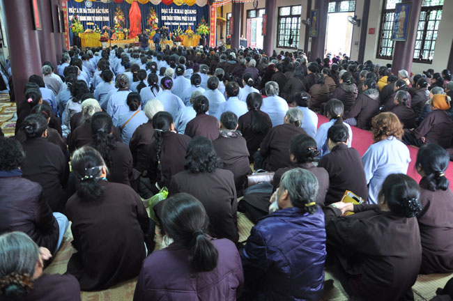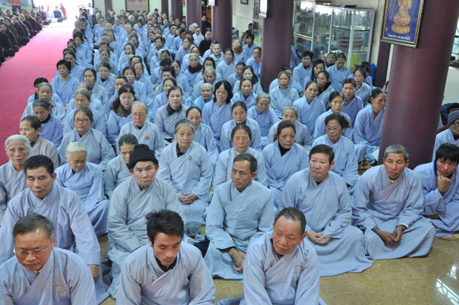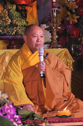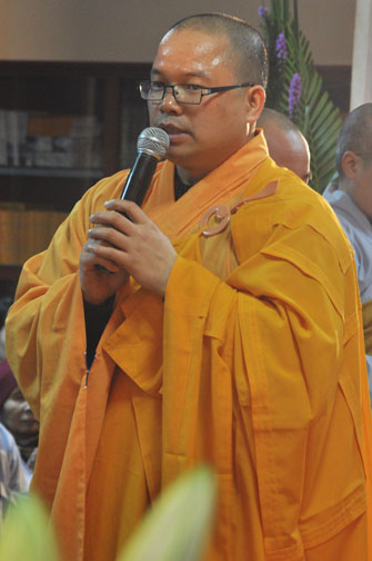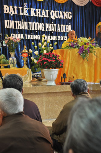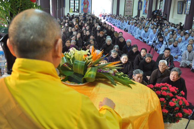 14h00 chiều quý Phật tử xếp thành hai hàng cung nghinh Thượng tọa thăng tòa thuyết pháp. Trước những tin đồn không tốt làm xao động lòng tin của Phật tử, vì vậy trong suốt giờ pháp thoại Thượng tọa nhấn mạnh, người Phật tử phải nên có niềm tin chắc thật đối với Tam Bảo và thực hành tám con đường chân chánh mà Đức Phật đã dạy, để mang đến cho cuộc sống hiện tại luôn được an lành và hạnh phúc, tương lai được phước báo tốt đẹp.