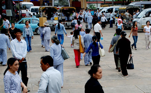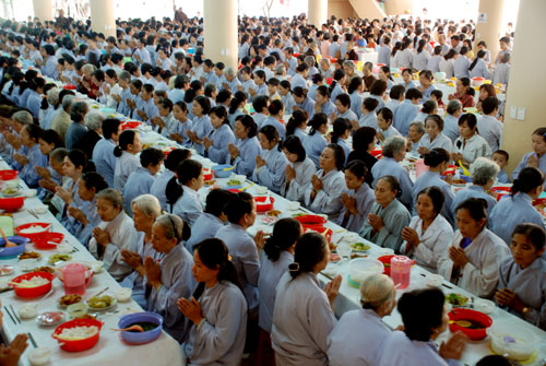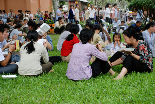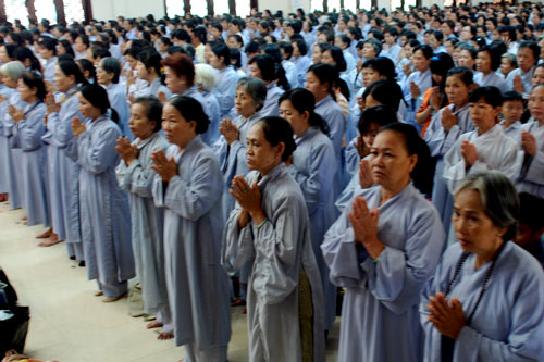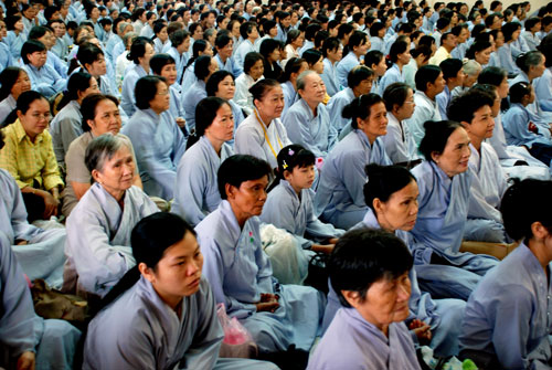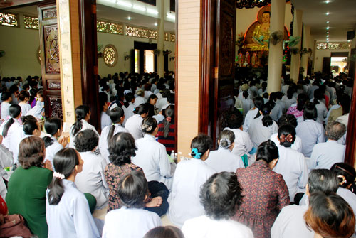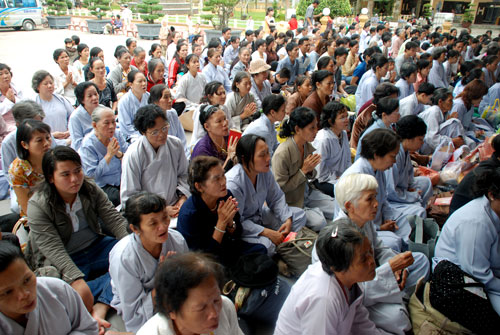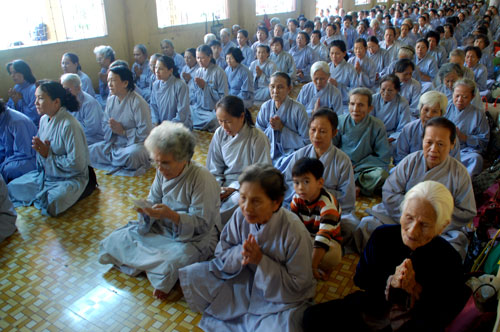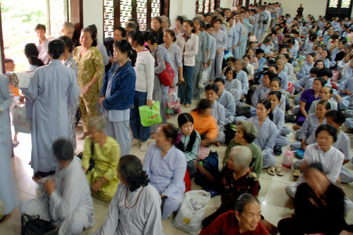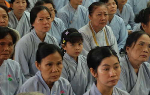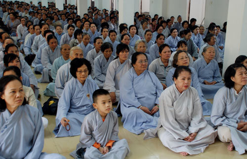 Phật tử về tham dự khóa tu một ngày tại chùa Hoằng Pháp.
