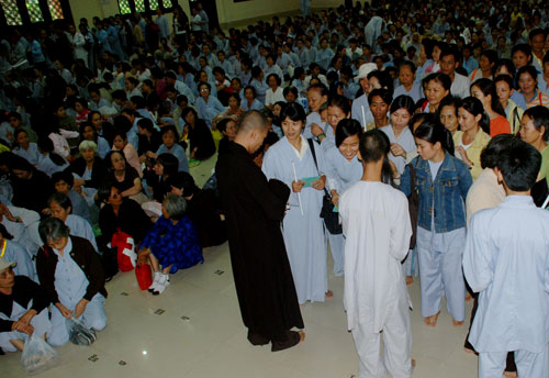 Buổi chiều, sau giờ công phu tu tập, trước khi ra về các Phật tử được BTC gửi tặng món quà pháp bảo gồm : VCD " Phật pháp nhiệm màu kỳ 16 ” và Lịch khóa tu năm 2009. Có lẽ ngoài món quà cầm trên tay, ai cũng cảm nhận được sự an lạc của nội tâm trong một ngày tu tập.