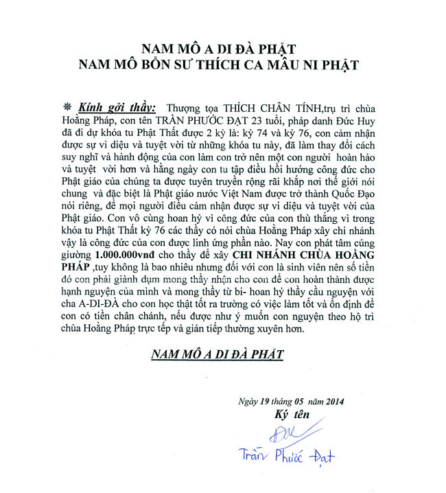 - Dạ! Mô Phật! Con có gửi thư ạ! Nhưng chùa hỏi hoàn cảnh con có gì không?