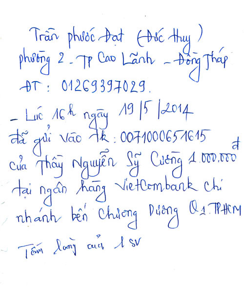 - Dạ! Nói thiệt là số tiền này con phải để dành khá lâu, vì con tuy là sinh viên nhưng không có đi làm thêm.Nên khi má cho tiền chi tiêu, con đã tích cóp dần dần… cho đến khi chẵn thì gửi cúng chùa, vì sợ để lâu mình sẽ lại tiêu mất!