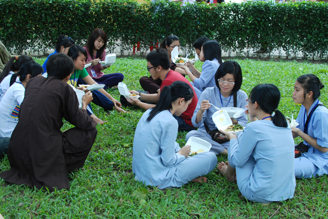 Buổi chiều, sau giờ thọ trai và nghỉ trưa, các sinh viên được hướng dẫn tụng kinh Vu Lan. Tiếp đó là phần giao lưu, vui chơi văn nghệ trong tinh thần đạo pháp.