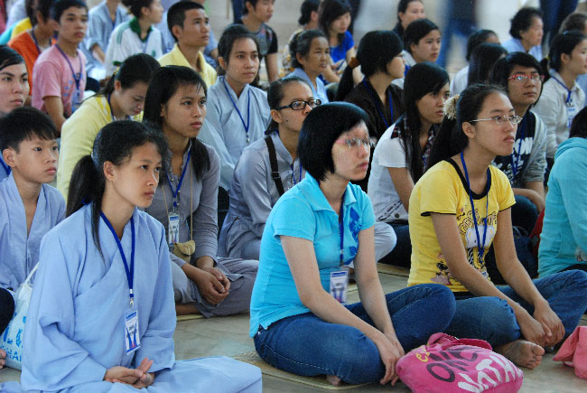 Mở đầu ngày tu hôm nay, đúng 8h sáng là thời pháp thoại của Đại đức Thích Đồng Trí tiến sĩ Phật học với chủ đề “Tuổi trẻ, ước mơ và hiện thực”. Thời pháp thoại đã định hướng cho các bạn trẻ những phương pháp để có thể biến ước mơ thành hiện thực, trở thành người trẻ năng động, sáng tạo, cống hiến sức mình cho sự giàu mạnh của đất nước. Cùng đó, sau thời pháp là phần trả lời những thắc mắc, băn khoăn của bạn trẻ về những vấn đề gặp phải trong cuộc sống văn minh, hiện đại hôm nay như lựa chọn tình yêu hay giữ tôn giáo mình, thành công sự nghiệp mà vẫn giữ được sự thuần lương, v.v… Những chia sẻ, giải đáp của đại đức đã nhận được sự ủng hộ, những tràng vỗ tay của các bạn trẻ.