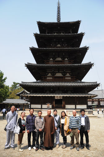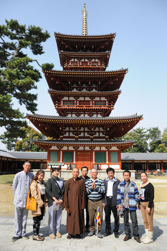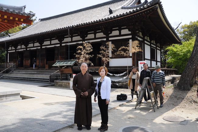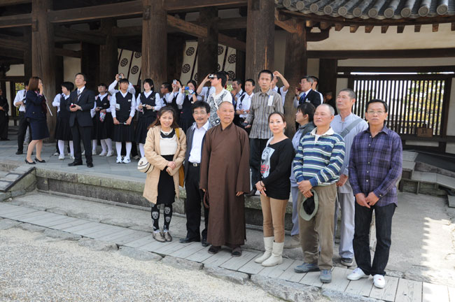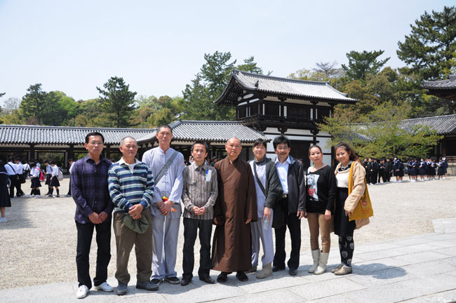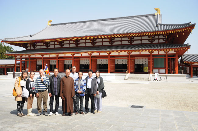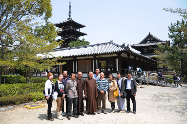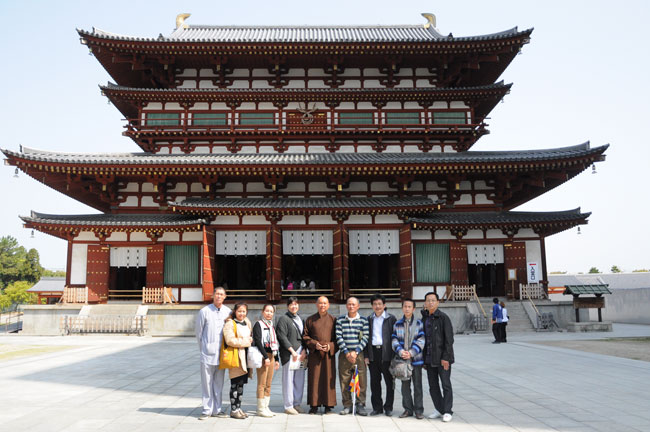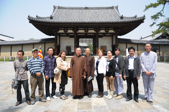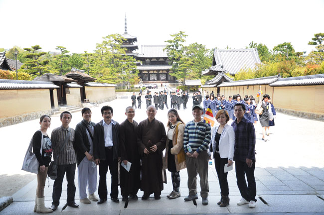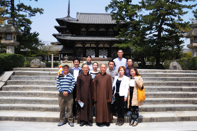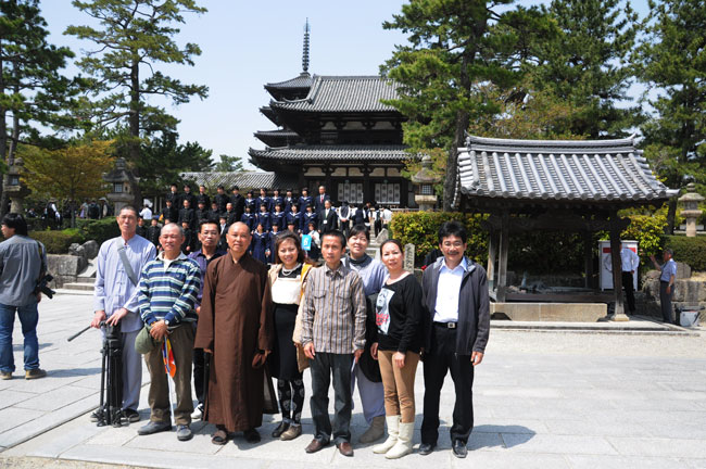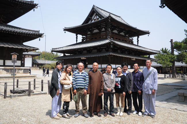 Rời chùa Dược Sư, đoàn ghé thăm chùa Pháp Long, vùng Ikoma thuộc cố đô Nara, quê hương của Thánh Đức thái tử. Đây là một công trình kiến trúc bằng gỗ lâu đời nhất trên thế giới còn được bảo lưu gần như nguyên vẹn cho đến ngày nay, được UNESCO công nhận là di sản văn hóa thế giới vào năm 1993. Chùa được Thánh Đức thái tử xây dựng và hoàn thành vào năm 607 với mục đích cầu an cho thiên hoàng Yomei. Năm 670, chùa bị thiêu rụi và được xây dựng lại với dáng vẻ như hiện nay từ cuối thế kỷ thứ VII đầu thế kỷ thứ VIII.