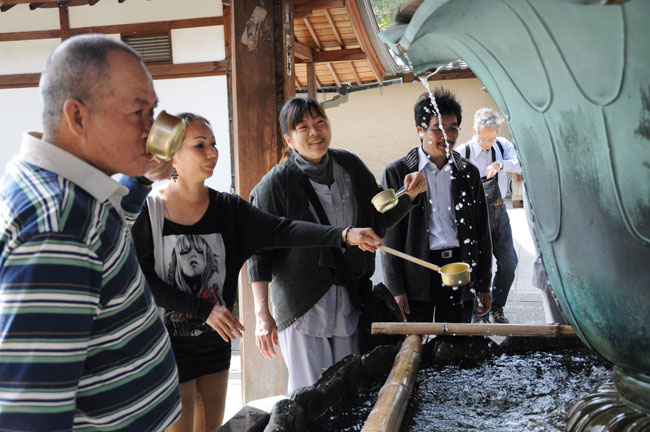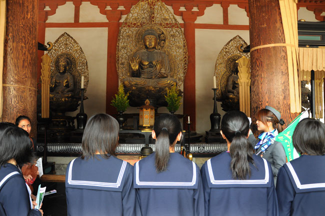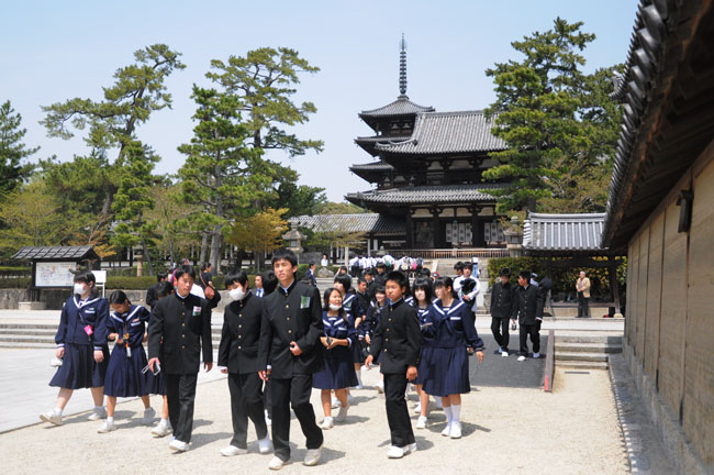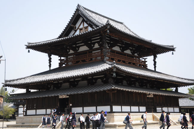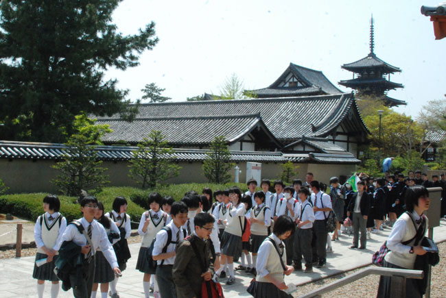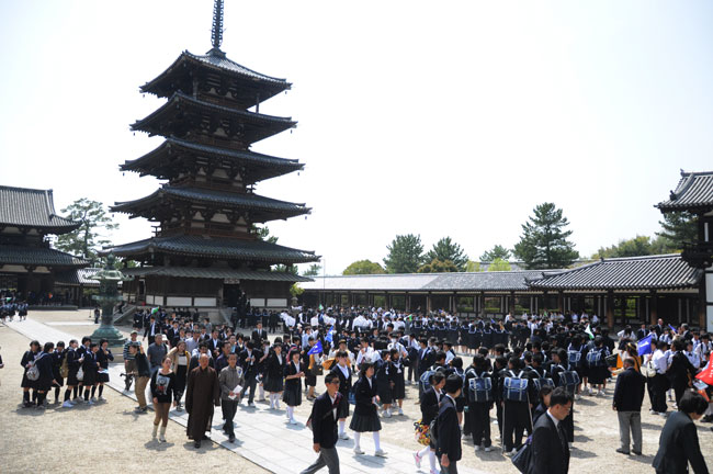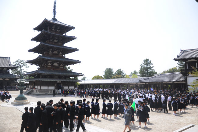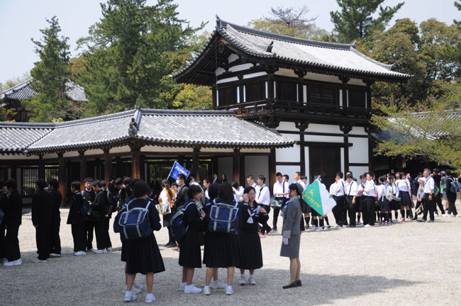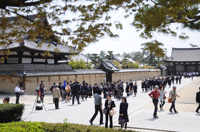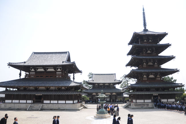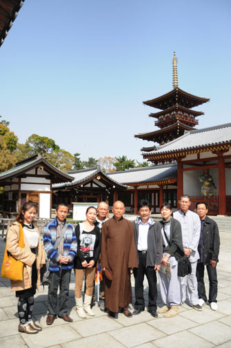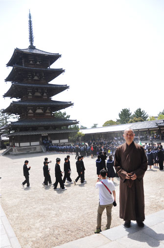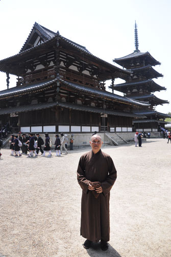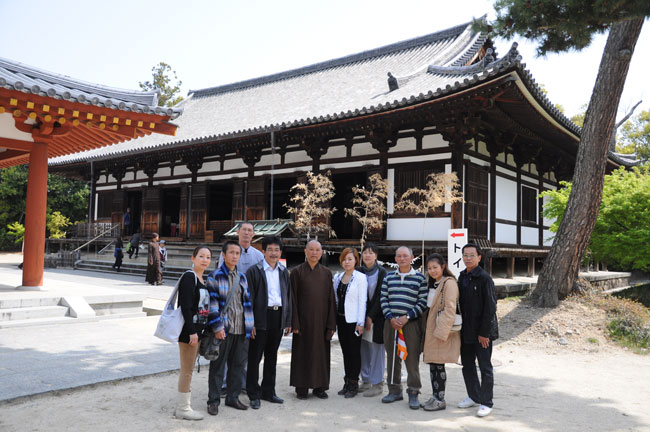 Rời chùa Dược Sư, đoàn ghé thăm chùa Pháp Long, vùng Ikoma thuộc cố đô Nara, quê hương của Thánh Đức thái tử. Đây là một công trình kiến trúc bằng gỗ lâu đời nhất trên thế giới còn được bảo lưu gần như nguyên vẹn cho đến ngày nay, được UNESCO công nhận là di sản văn hóa thế giới vào năm 1993. Chùa được Thánh Đức thái tử xây dựng và hoàn thành vào năm 607 với mục đích cầu an cho thiên hoàng Yomei. Năm 670, chùa bị thiêu rụi và được xây dựng lại với dáng vẻ như hiện nay từ cuối thế kỷ thứ VII đầu thế kỷ thứ VIII.