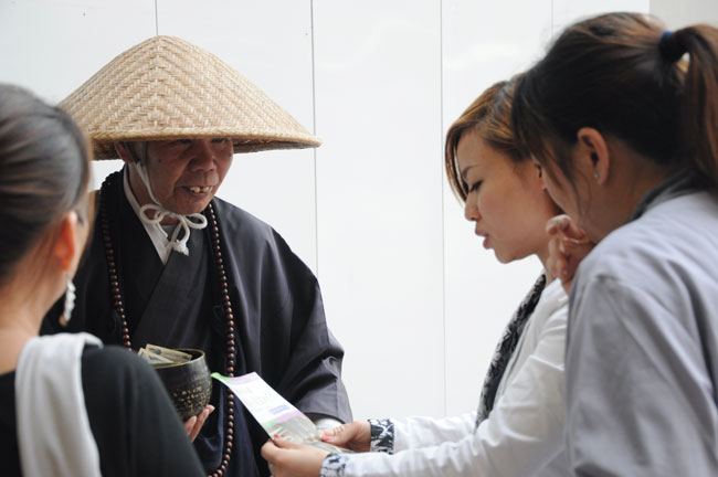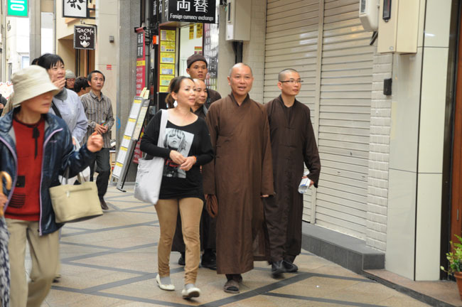Buổi chiều, đoàn về chùa Hòa Lạc. Trên đường về đoàn bắt gặp hình ảnh một nhà sư đứng khất thực gần nhà ga Kintetsu Nara, đoàn dừng lại hỏi thăm và cúng dường. Được biết, vị sư này hiện đang trụ trì tại một ngôi chùa gần đó không xa và đi khất thực vào mỗi buổi chiều khoảng 4 đến 5 giờ đồng hồ.