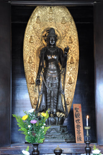 Phía đông của chùa là một tự viện nhỏ thờ tượng Quan Âm cổ bằng đồng cùng tứ đại thiên vương bằng gỗ được tạc cách đây 1300 năm với bốn sắc thái khác nhau như bốn vị hộ pháp canh giữ ở bốn phương.